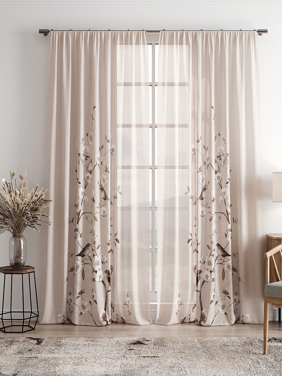 Тюль 2 шт. Легкая основа (вуаль) оформлена фотопечатью. Вуаль с матовой полупрозрачной текстурой. Отличается особым шиком, идеально подходит для создания воздушных штор. Придает ощущение свежести, хорошо пропускает воздух. Ткань неприхотлива в уходе, хорошо стирается без разрушения волокон с течением времени за счет высокого кручения нитей.