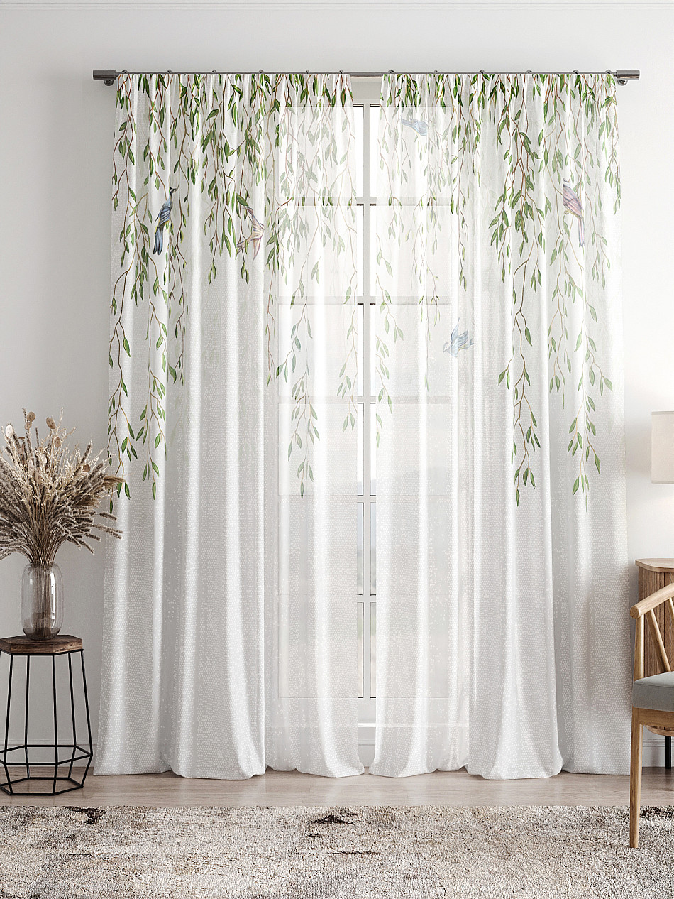 Тюль 2 шт. Легкая основа (вуаль) оформлена фотопечатью. Вуаль с матовой полупрозрачной текстурой. Отличается особым шиком, идеально подходит для создания воздушных штор. Придает ощущение свежести, хорошо пропускает воздух. Ткань неприхотлива в уходе, хорошо стирается без разрушения волокон с течением времени за счет высокого кручения нитей.