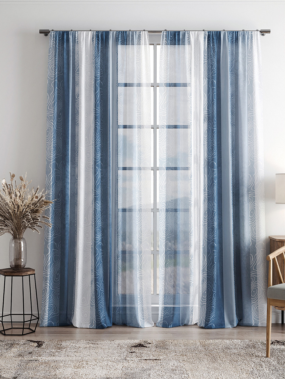 Тюль 2 шт. Легкая основа (вуаль) оформлена фотопечатью. Вуаль с матовой полупрозрачной текстурой. Отличается особым шиком, идеально подходит для создания воздушных штор. Придает ощущение свежести, хорошо пропускает воздух. Ткань неприхотлива в уходе, хорошо стирается без разрушения волокон с течением времени за счет высокого кручения нитей.