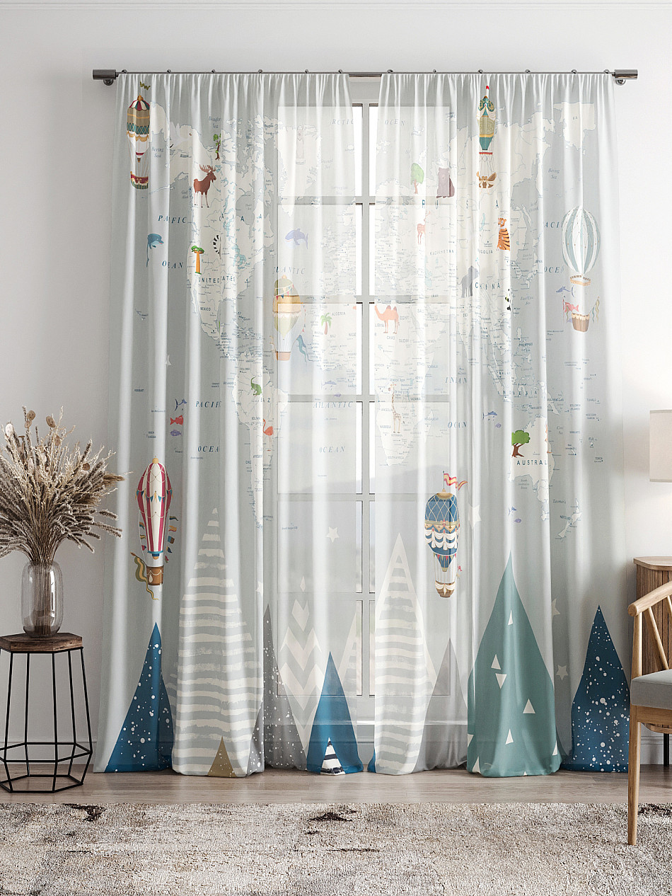 Детский Иллюстрация Карта мира Фото принтАксессуары для оформления штор: