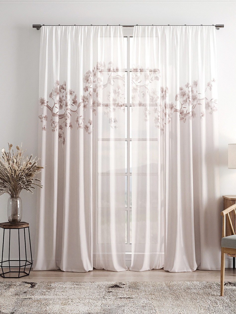 Тюль 2 шт. Легкая основа (вуаль) оформлена фотопечатью. Вуаль с матовой полупрозрачной текстурой. Отличается особым шиком, идеально подходит для создания воздушных штор. Придает ощущение свежести, хорошо пропускает воздух. Ткань неприхотлива в уходе, хорошо стирается без разрушения волокон с течением времени за счет высокого кручения нитей.