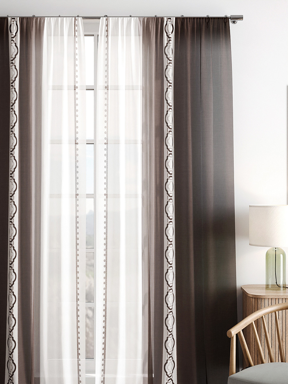 Вуаль – невесомая, практически прозрачная и очень нежная ткань, которая прекрасно смотрится в любом интерьере. Вуалевые шторы изысканны и элегантны как соло, так и в составе шторных ансамблей. Такие гардины придают окну воздушность, легко драпируются, мягко преломляют солнечные лучи и вносят изящество в оформление комнаты. Благодаря широкому ассортименту можно выбрать однотонные вуалевые шторы, либо с орнаментом, с аппликацией или вышивкой, в любом случае ваш выбор будет смотреться красиво и современно.