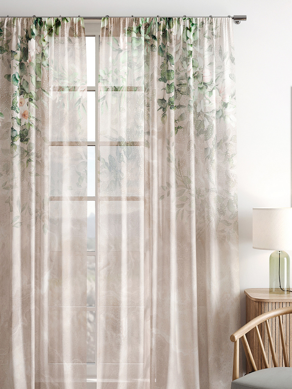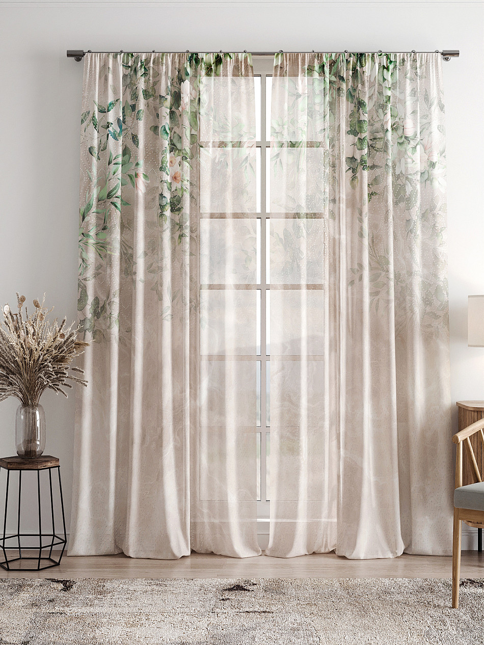 Тюль 2 шт. Легкая основа (вуаль) оформлена фотопечатью. Вуаль с матовой полупрозрачной текстурой. Отличается особым шиком, идеально подходит для создания воздушных штор. Придает ощущение свежести, хорошо пропускает воздух. Ткань неприхотлива в уходе, хорошо стирается без разрушения волокон с течением времени за счет высокого кручения нитей.