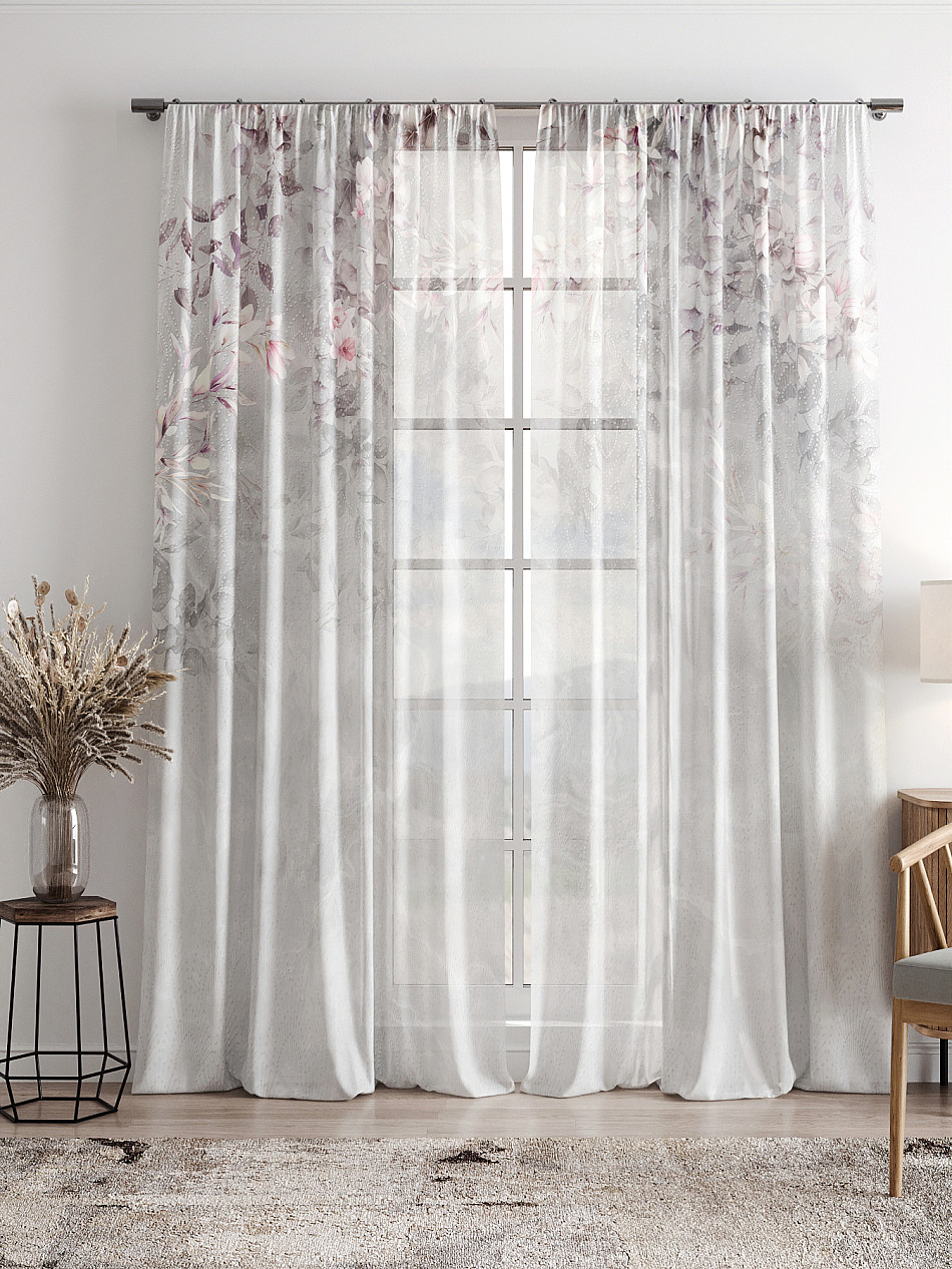 Тюль 2 шт. Легкая основа (вуаль) оформлена фотопечатью. Вуаль с матовой полупрозрачной текстурой. Отличается особым шиком, идеально подходит для создания воздушных штор. Придает ощущение свежести, хорошо пропускает воздух. Ткань неприхотлива в уходе, хорошо стирается без разрушения волокон с течением времени за счет высокого кручения нитей.