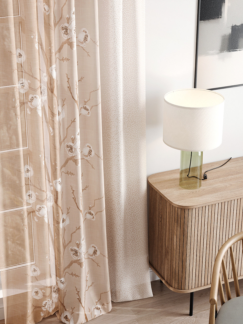 - Вуаль портьера для комнаты с принтом