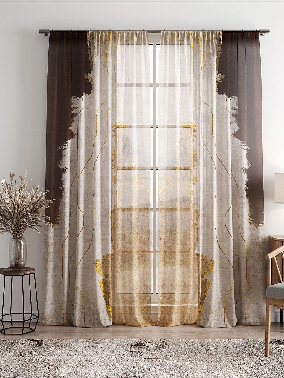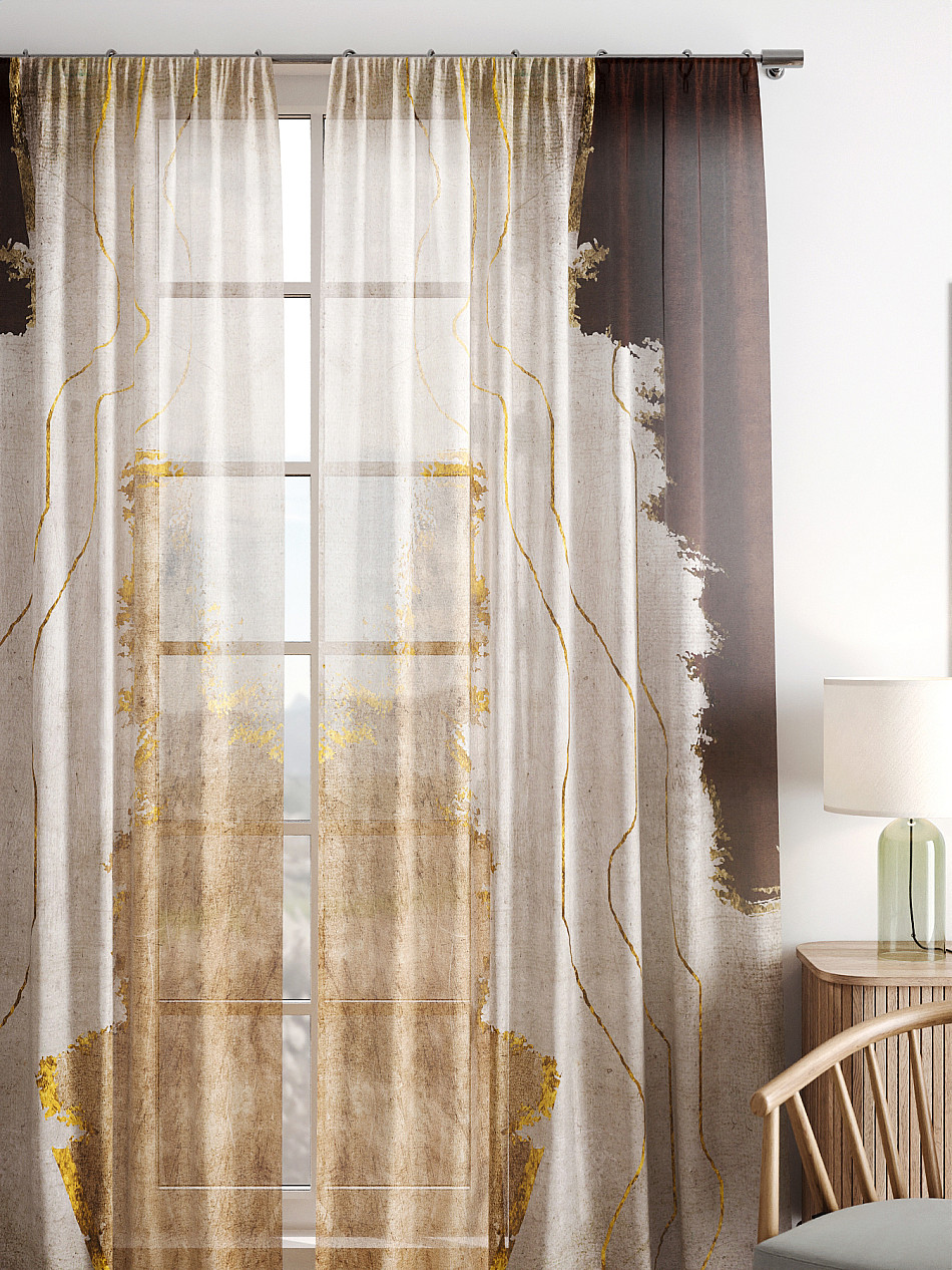 Тюль 2 шт. Легкая основа (вуаль) оформлена фотопечатью. Вуаль с матовой полупрозрачной текстурой. Отличается особым шиком, идеально подходит для создания воздушных штор. Придает ощущение свежести, хорошо пропускает воздух. Ткань неприхотлива в уходе, хорошо стирается без разрушения волокон с течением времени за счет высокого кручения нитей.