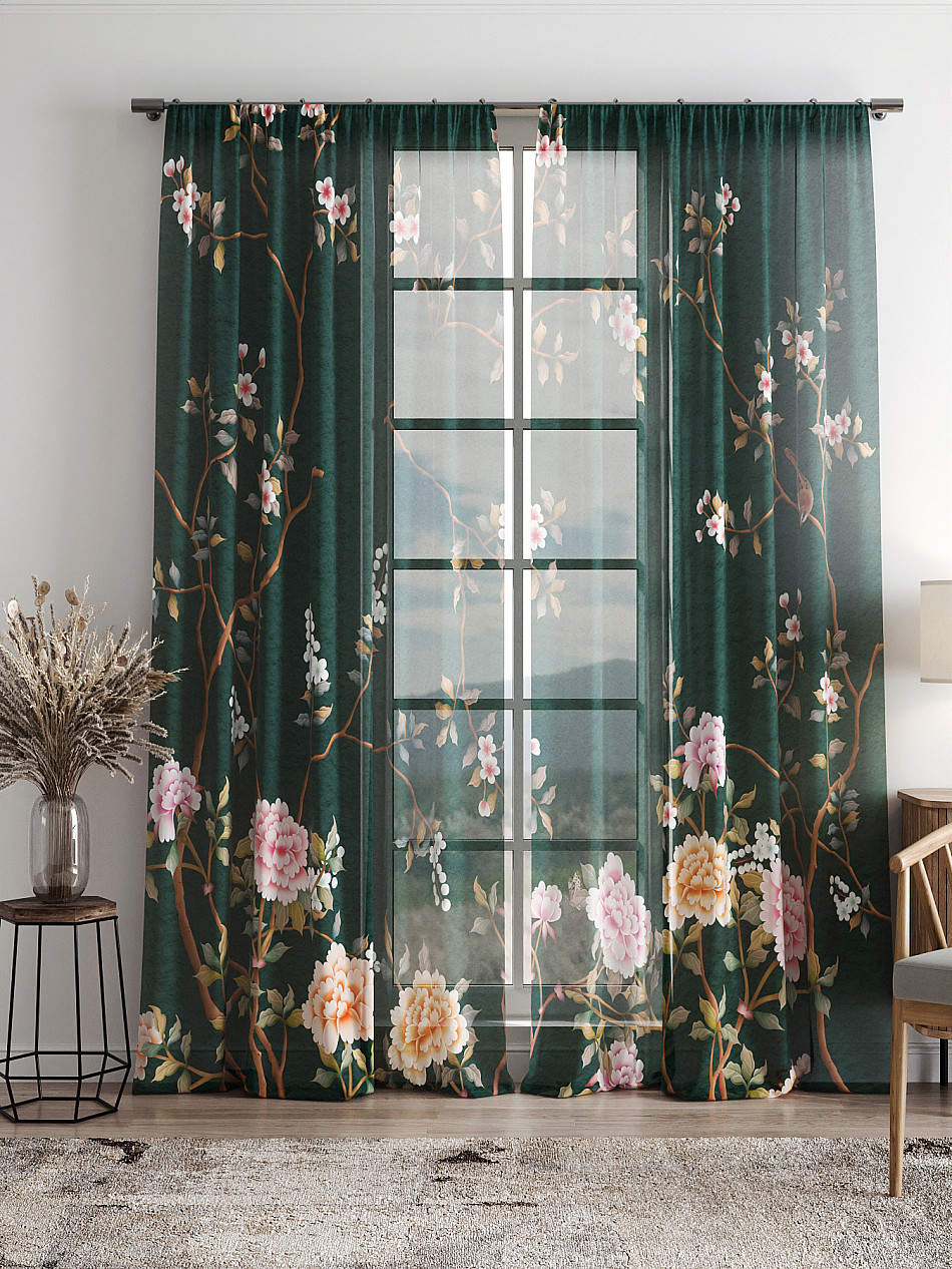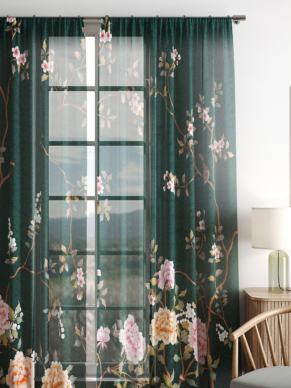 Тюль 2 шт. Легкая основа (вуаль) оформлена фотопечатью. Вуаль с матовой полупрозрачной текстурой. Отличается особым шиком, идеально подходит для создания воздушных штор. Придает ощущение свежести, хорошо пропускает воздух. Ткань неприхотлива в уходе, хорошо стирается без разрушения волокон с течением времени за счет высокого кручения нитей.