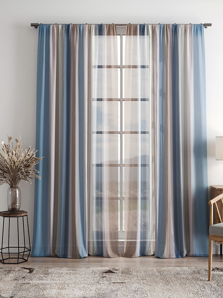 Тюль 2 шт. Легкая основа (вуаль) оформлена фотопечатью. Вуаль с матовой полупрозрачной текстурой. Отличается особым шиком, идеально подходит для создания воздушных штор. Придает ощущение свежести, хорошо пропускает воздух. Ткань неприхотлива в уходе, хорошо стирается без разрушения волокон с течением времени за счет высокого кручения нитей.