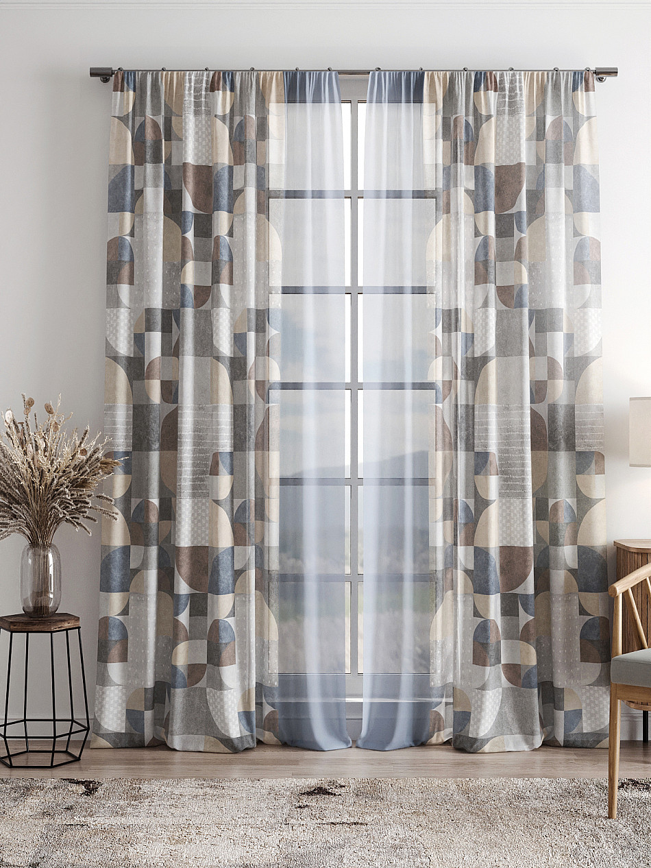 - Тюль с геометрическим рисунком