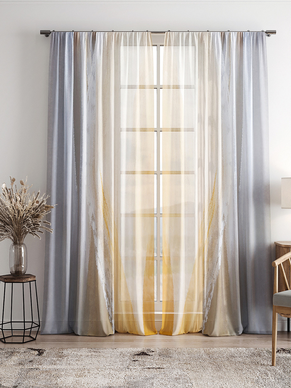 Тюль 2 шт. Легкая основа (вуаль) оформлена фотопечатью. Вуаль с матовой полупрозрачной текстурой. Отличается особым шиком, идеально подходит для создания воздушных штор. Придает ощущение свежести, хорошо пропускает воздух. Ткань неприхотлива в уходе, хорошо стирается без разрушения волокон с течением времени за счет высокого кручения нитей.