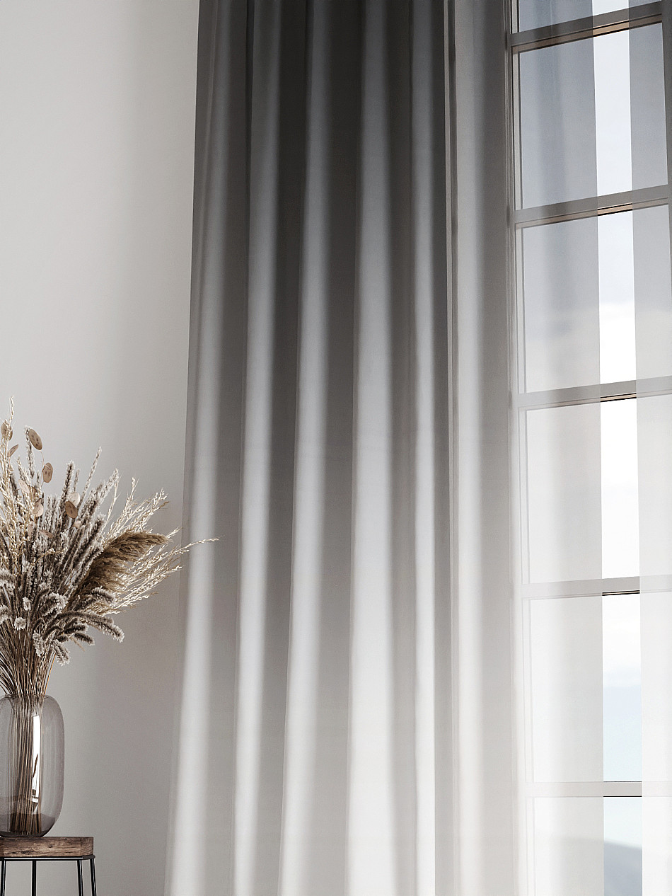 Вуаль – невесомая, практически прозрачная и очень нежная ткань, которая прекрасно смотрится в любом интерьере. Вуалевые шторы изысканны и элегантны как соло, так и в составе шторных ансамблей. Такие гардины придают окну воздушность, легко драпируются, мягко преломляют солнечные лучи и вносят изящество в оформление комнаты. Благодаря широкому ассортименту можно выбрать однотонные вуалевые шторы, либо с орнаментом, с аппликацией или вышивкой, в любом случае ваш выбор будет смотреться красиво и современно.
