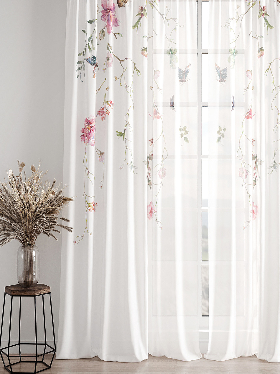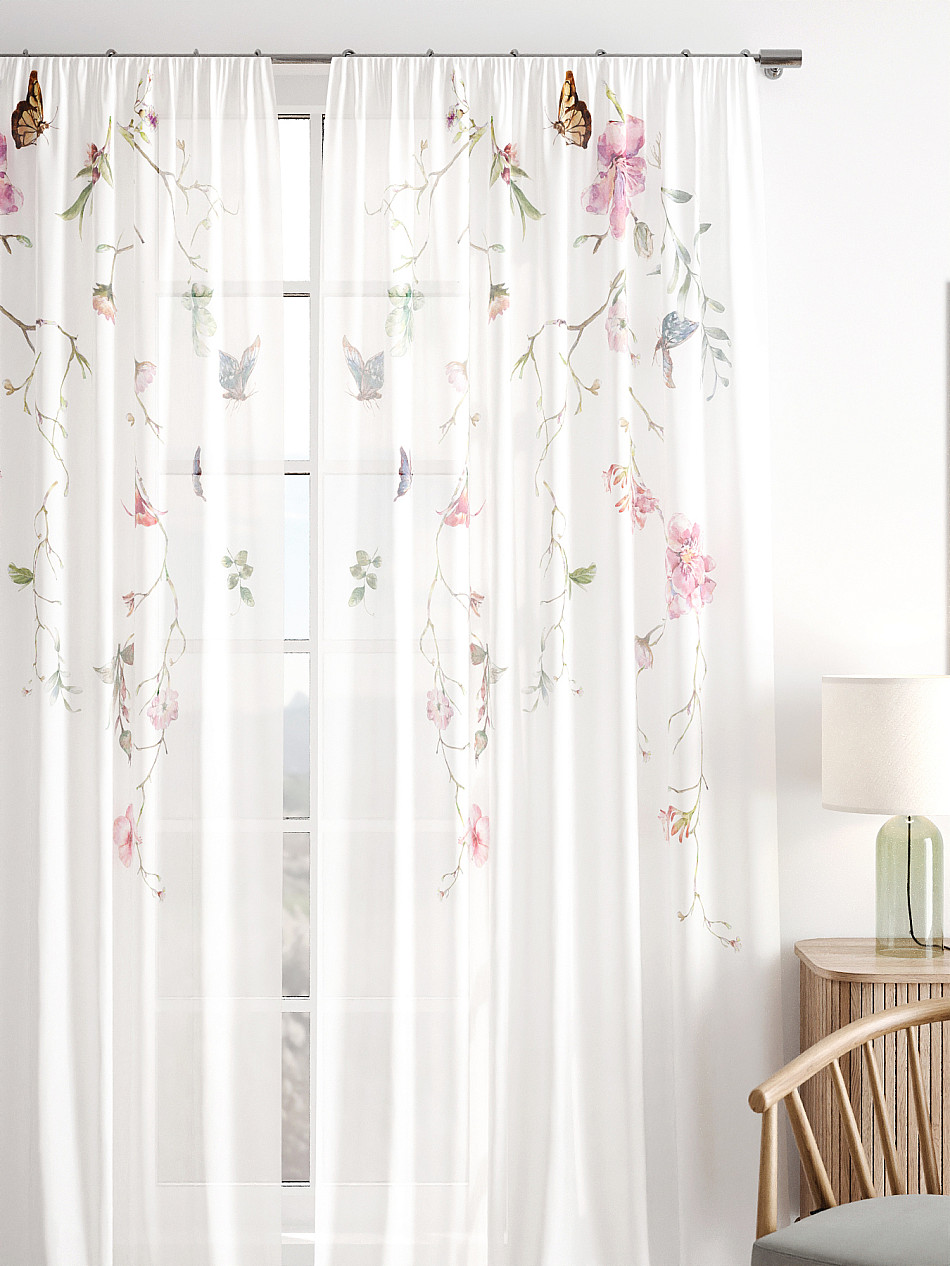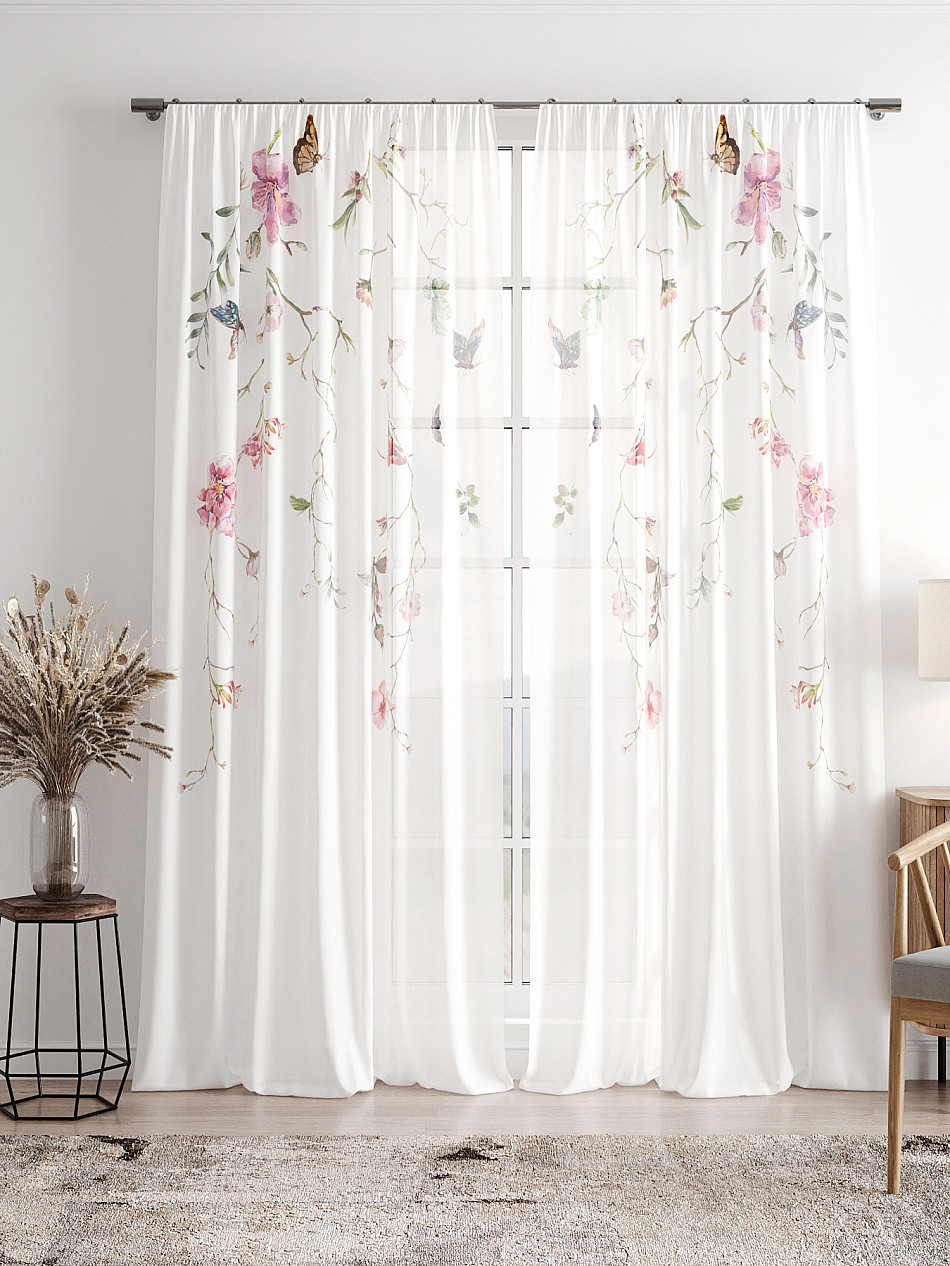 Тюль 2 шт. Легкая основа (вуаль) оформлена фотопечатью. Вуаль с матовой полупрозрачной текстурой. Отличается особым шиком, идеально подходит для создания воздушных штор. Придает ощущение свежести, хорошо пропускает воздух. Ткань неприхотлива в уходе, хорошо стирается без разрушения волокон с течением времени за счет высокого кручения нитей.