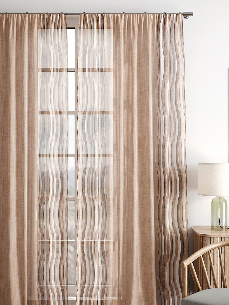 Вуаль – невесомая, практически прозрачная и очень нежная ткань, которая прекрасно смотрится в любом интерьере. Вуалевые шторы изысканны и элегантны как соло, так и в составе шторных ансамблей. Такие гардины придают окну воздушность, легко драпируются, мягко преломляют солнечные лучи и вносят изящество в оформление комнаты. Благодаря широкому ассортименту можно выбрать однотонные вуалевые шторы, либо с орнаментом, с аппликацией или вышивкой, в любом случае ваш выбор будет смотреться красиво и современно.