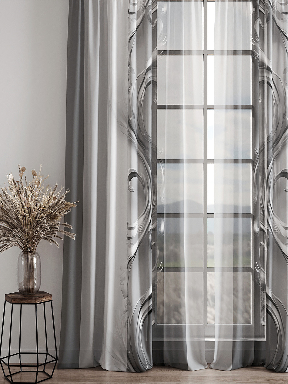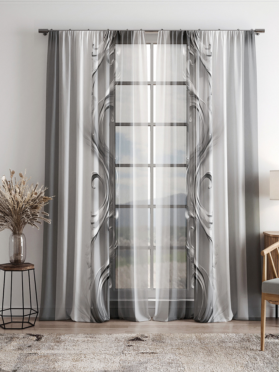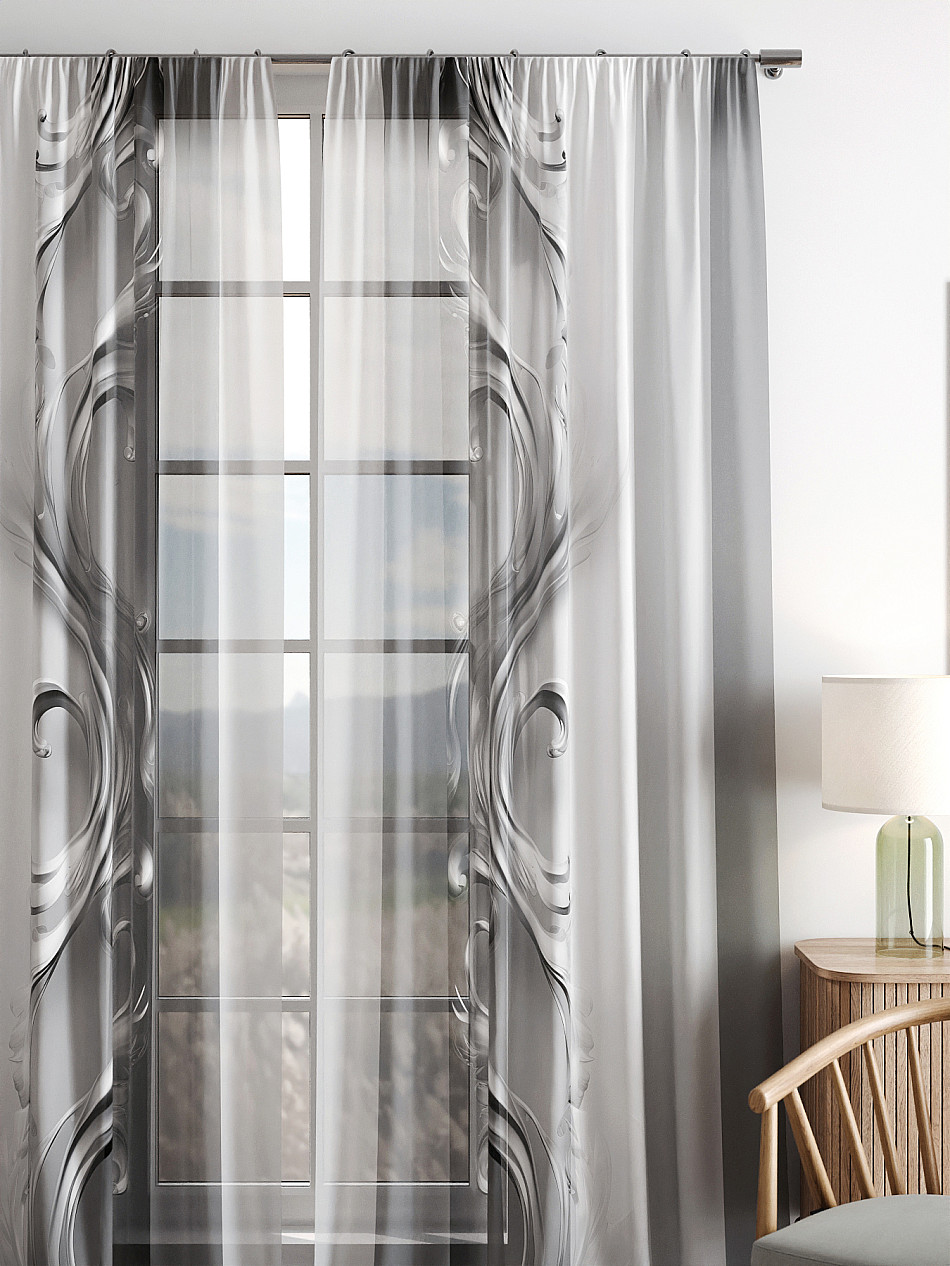 Тюль 2 шт. Легкая основа (вуаль) оформлена фотопечатью. Вуаль с матовой полупрозрачной текстурой. Отличается особым шиком, идеально подходит для создания воздушных штор. Придает ощущение свежести, хорошо пропускает воздух. Ткань неприхотлива в уходе, хорошо стирается без разрушения волокон с течением времени за счет высокого кручения нитей.