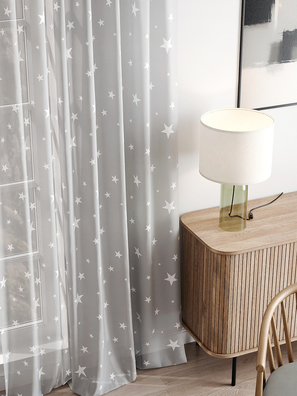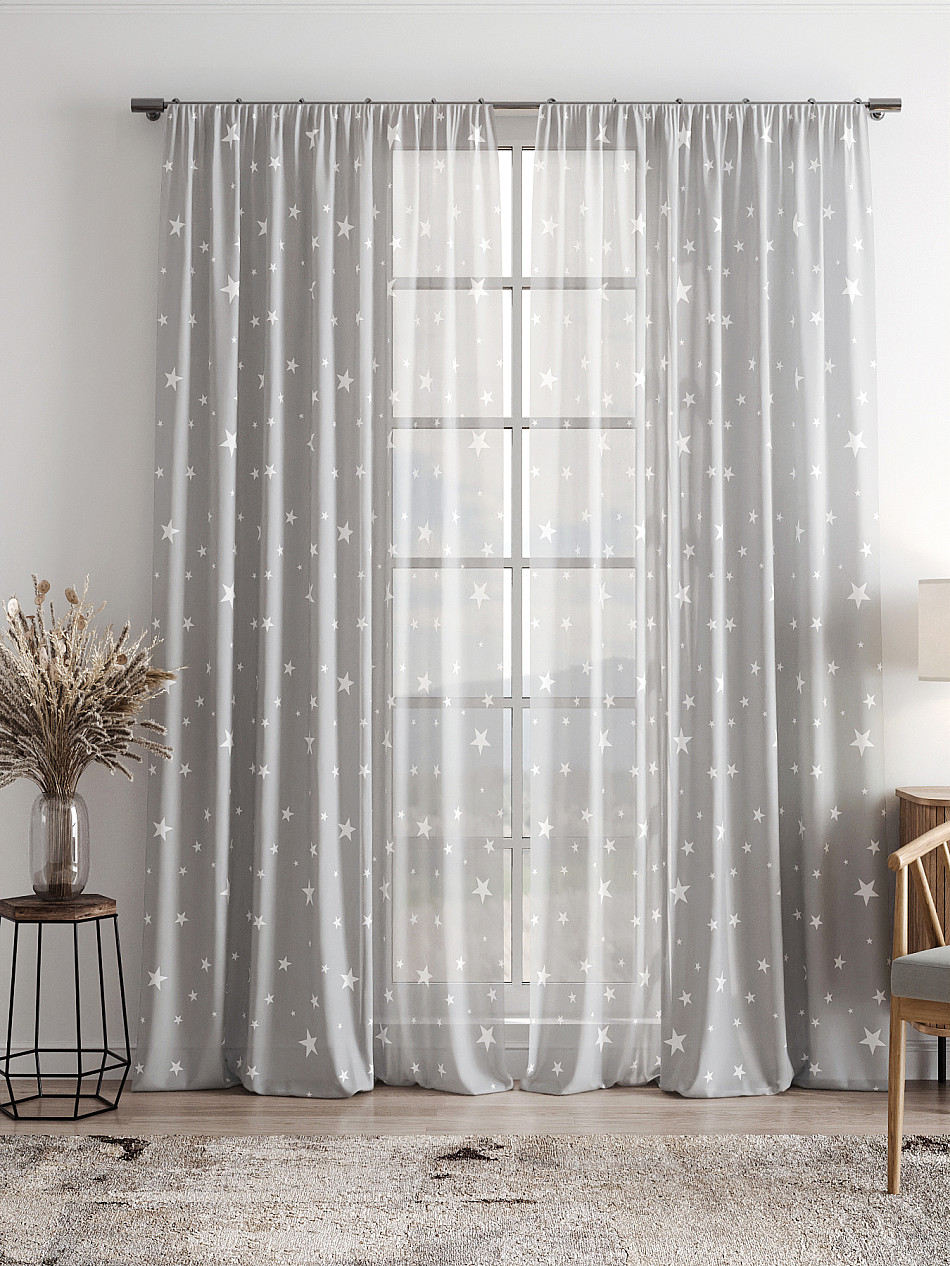 - Вуаль портьера для комнаты с принтом