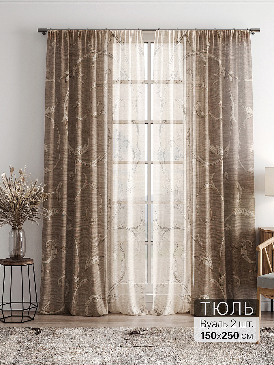 Тюль 2 шт. Легкая основа (вуаль) оформлена фотопечатью. Вуаль с матовой полупрозрачной текстурой. Отличается особым шиком, идеально подходит для создания воздушных штор. Придает ощущение свежести, хорошо пропускает воздух. Ткань неприхотлива в уходе, хорошо стирается без разрушения волокон с течением времени за счет высокого кручения нитей.