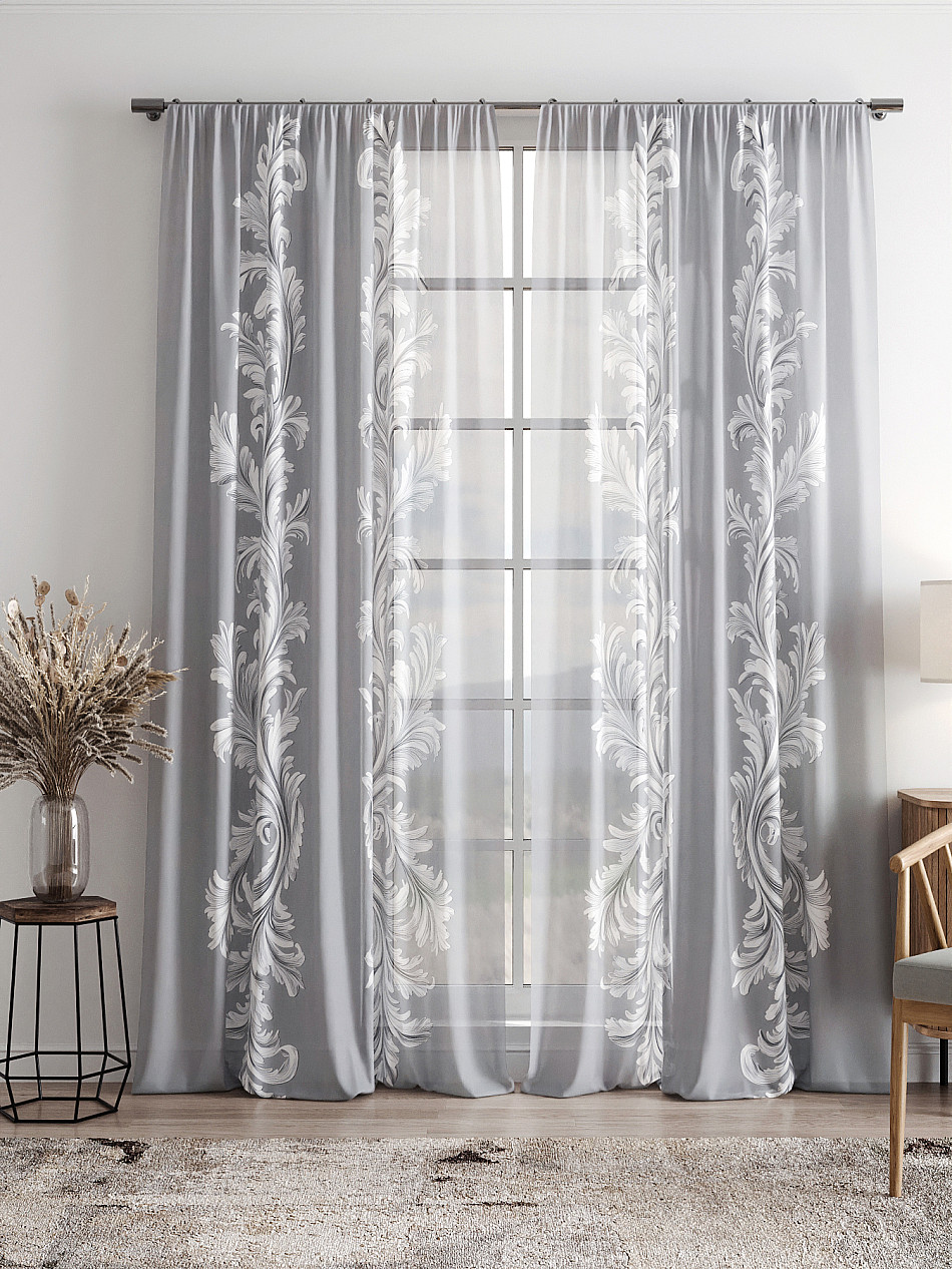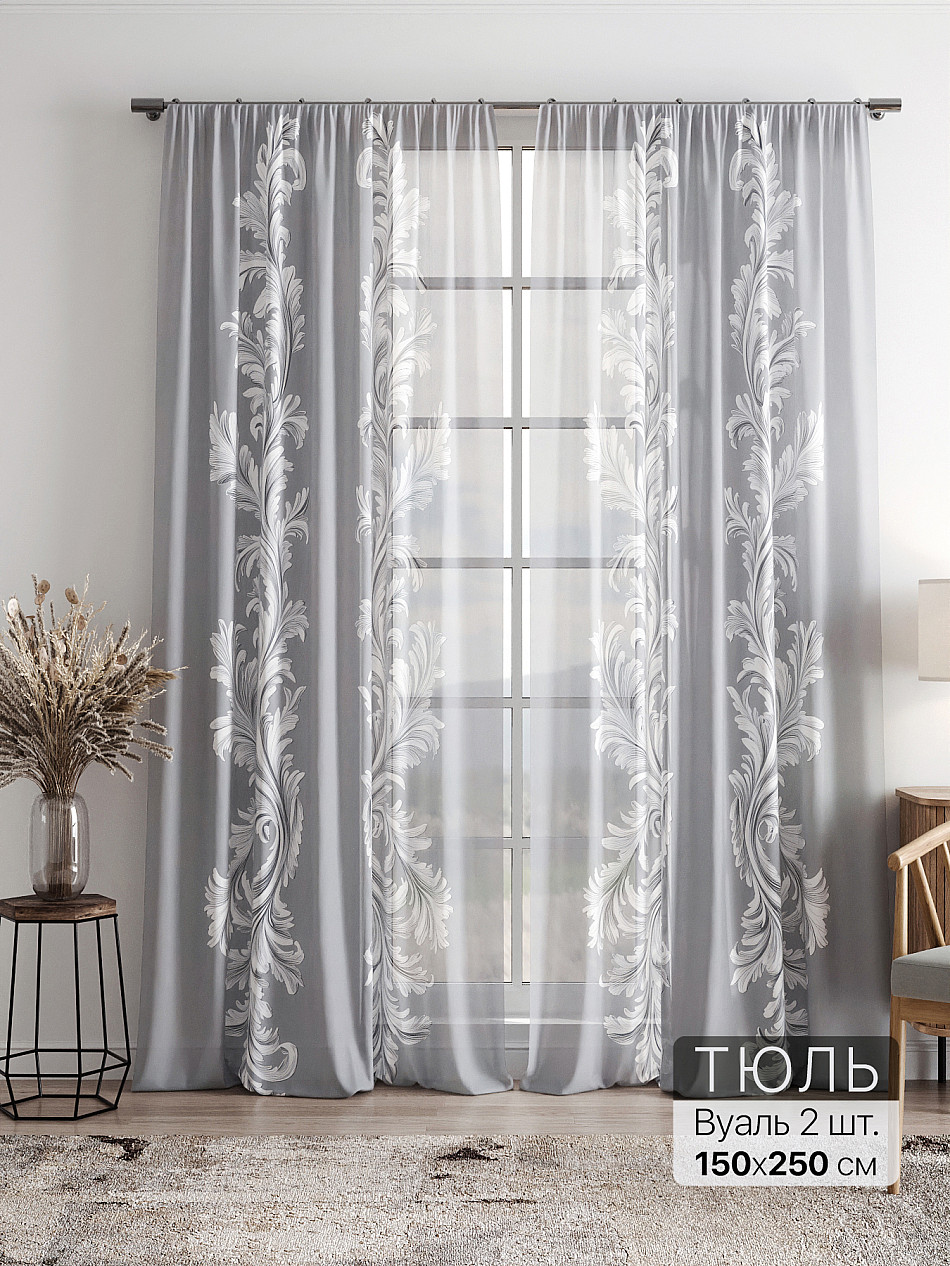 Тюль 2 шт. Легкая основа (вуаль) оформлена фотопечатью. Вуаль с матовой полупрозрачной текстурой. Отличается особым шиком, идеально подходит для создания воздушных штор. Придает ощущение свежести, хорошо пропускает воздух. Ткань неприхотлива в уходе, хорошо стирается без разрушения волокон с течением времени за счет высокого кручения нитей.