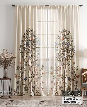 Тюль 2 шт. Легкая основа (вуаль) оформлена фотопечатью. Вуаль с матовой полупрозрачной текстурой. Отличается особым шиком, идеально подходит для создания воздушных штор. Придает ощущение свежести, хорошо пропускает воздух. Ткань неприхотлива в уходе, хорошо стирается без разрушения волокон с течением времени за счет высокого кручения нитей.
