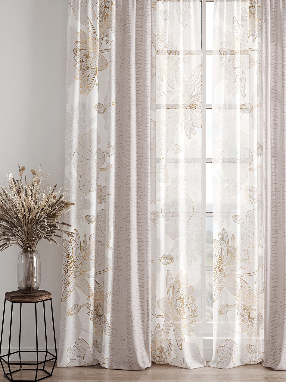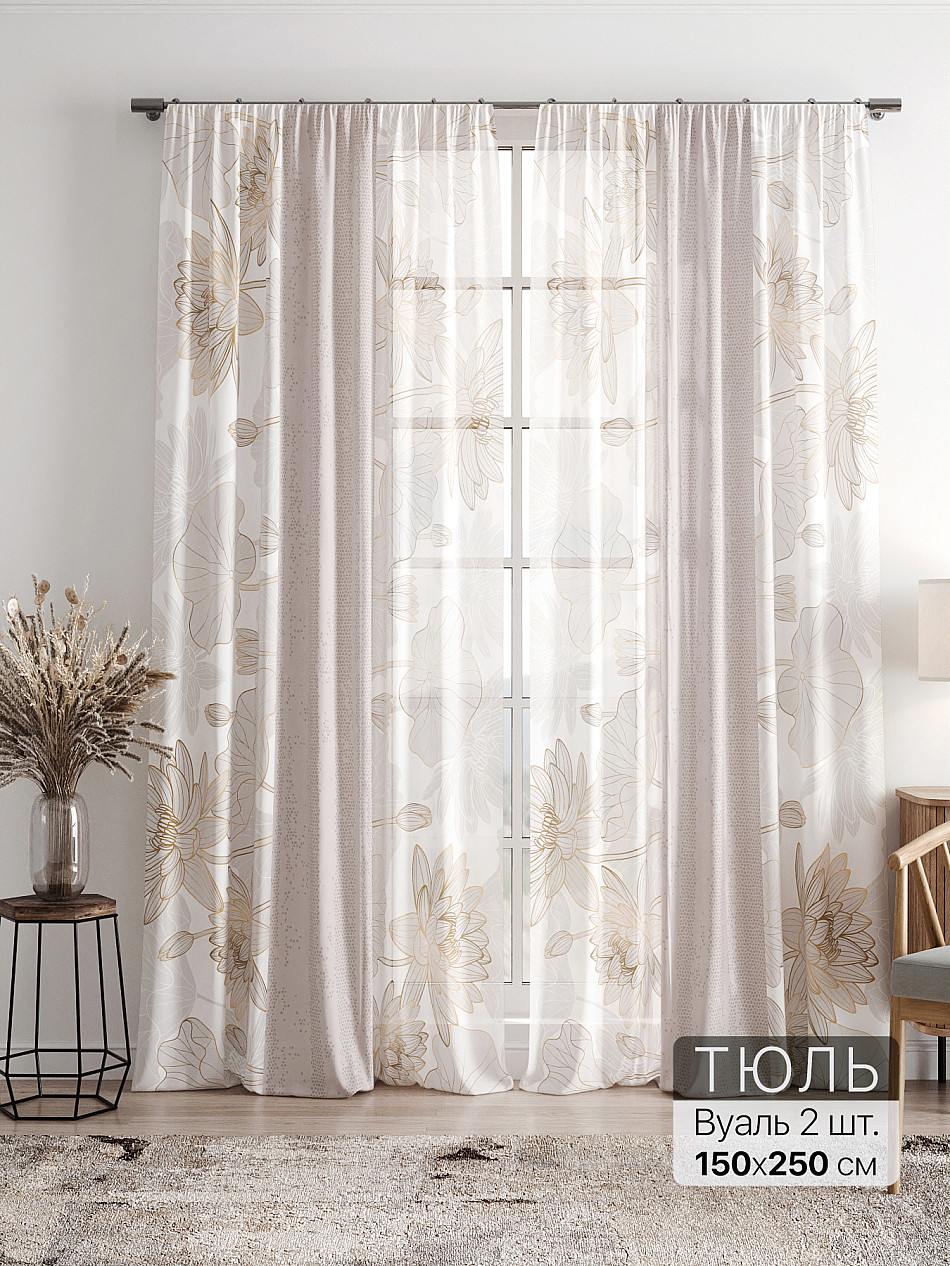Тюль 2 шт. Легкая основа (вуаль) оформлена фотопечатью. Вуаль с матовой полупрозрачной текстурой. Отличается особым шиком, идеально подходит для создания воздушных штор. Придает ощущение свежести, хорошо пропускает воздух. Ткань неприхотлива в уходе, хорошо стирается без разрушения волокон с течением времени за счет высокого кручения нитей.