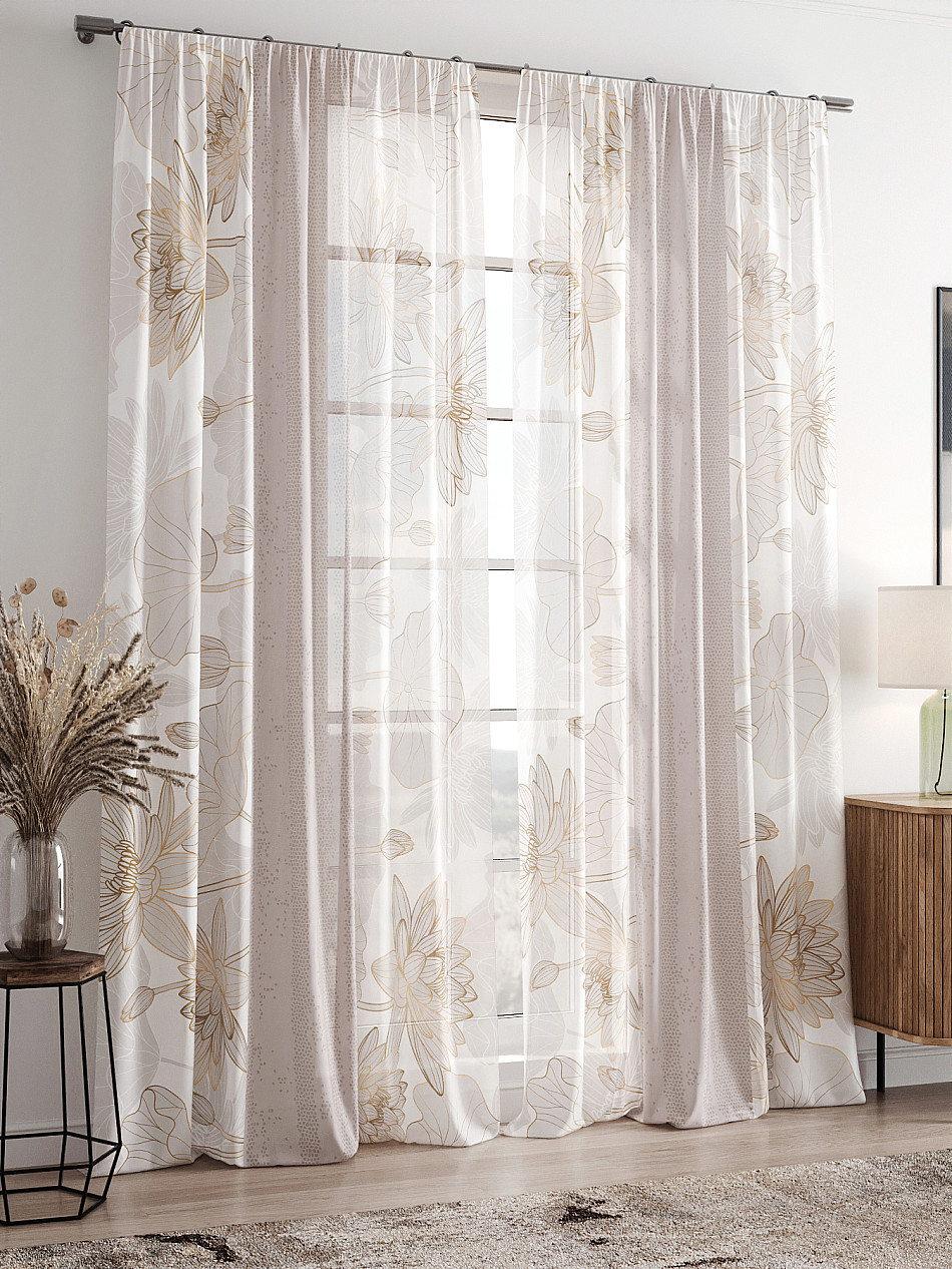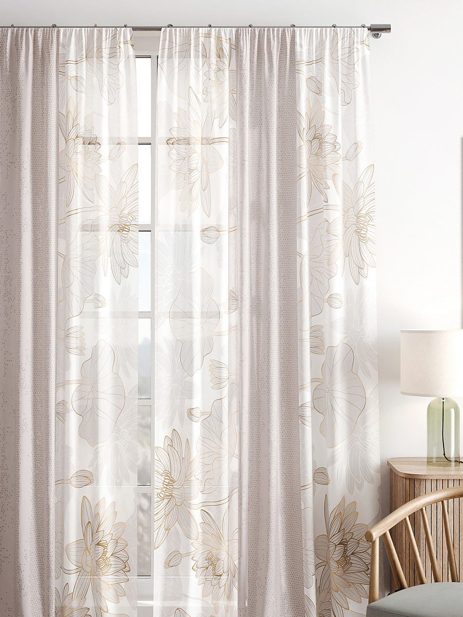 Вуаль 150х250 см — 2 шт. ( Изменить высоту) Крепление: шторная лента (крючки), кулиска Подробнее