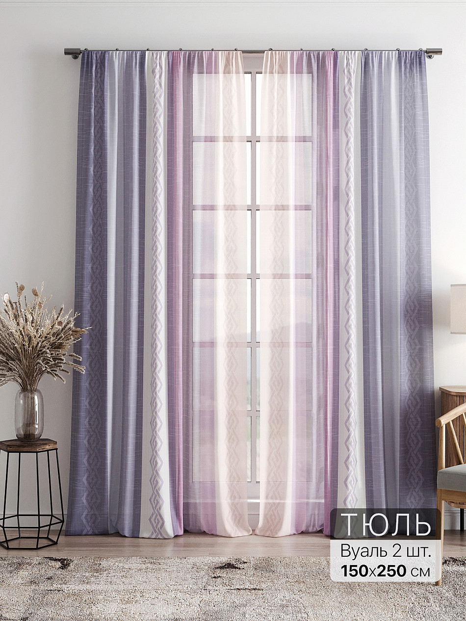 Тюль 2 шт. Легкая основа (вуаль) оформлена фотопечатью. Вуаль с матовой полупрозрачной текстурой. Отличается особым шиком, идеально подходит для создания воздушных штор. Придает ощущение свежести, хорошо пропускает воздух. Ткань неприхотлива в уходе, хорошо стирается без разрушения волокон с течением времени за счет высокого кручения нитей.