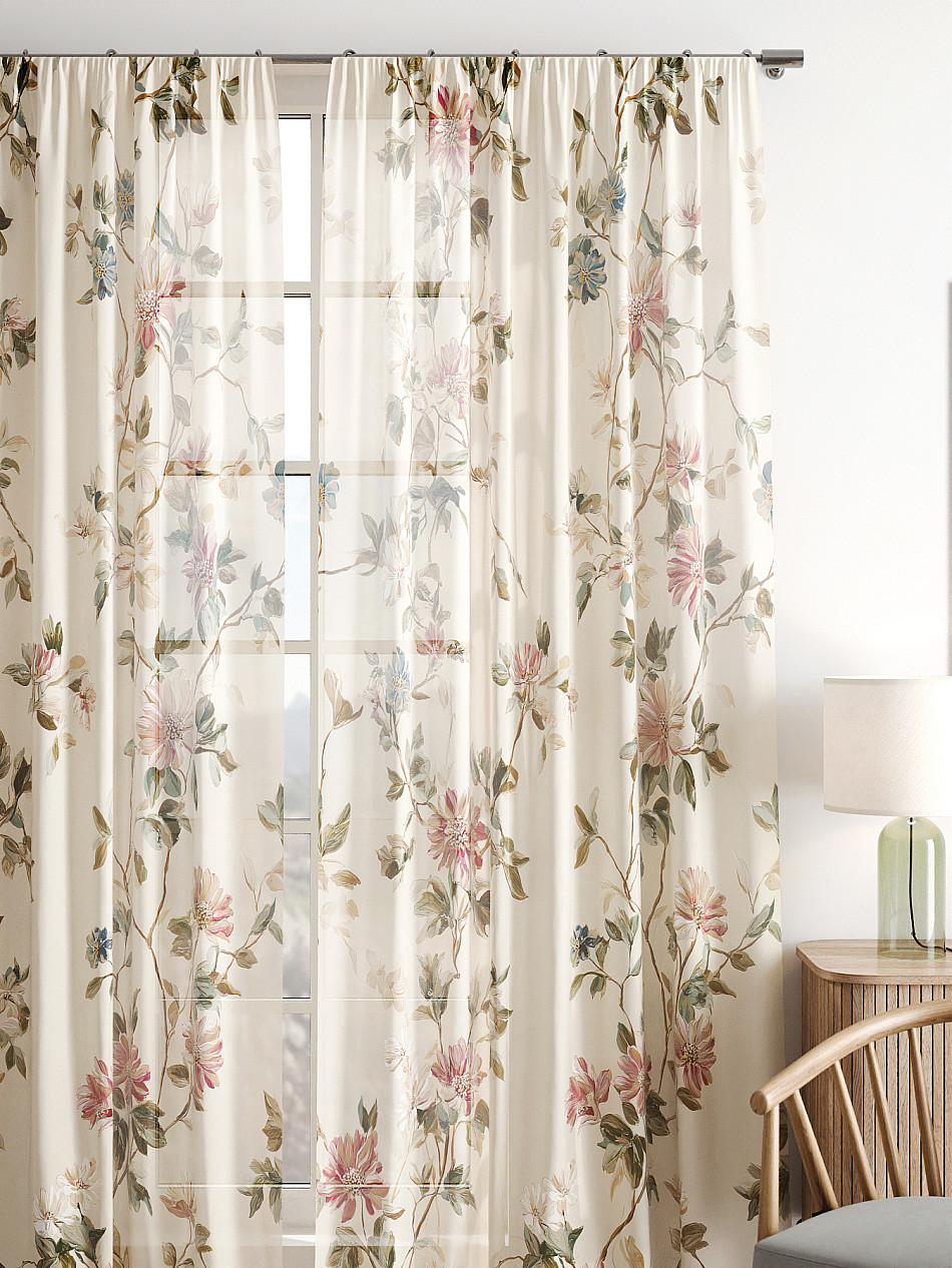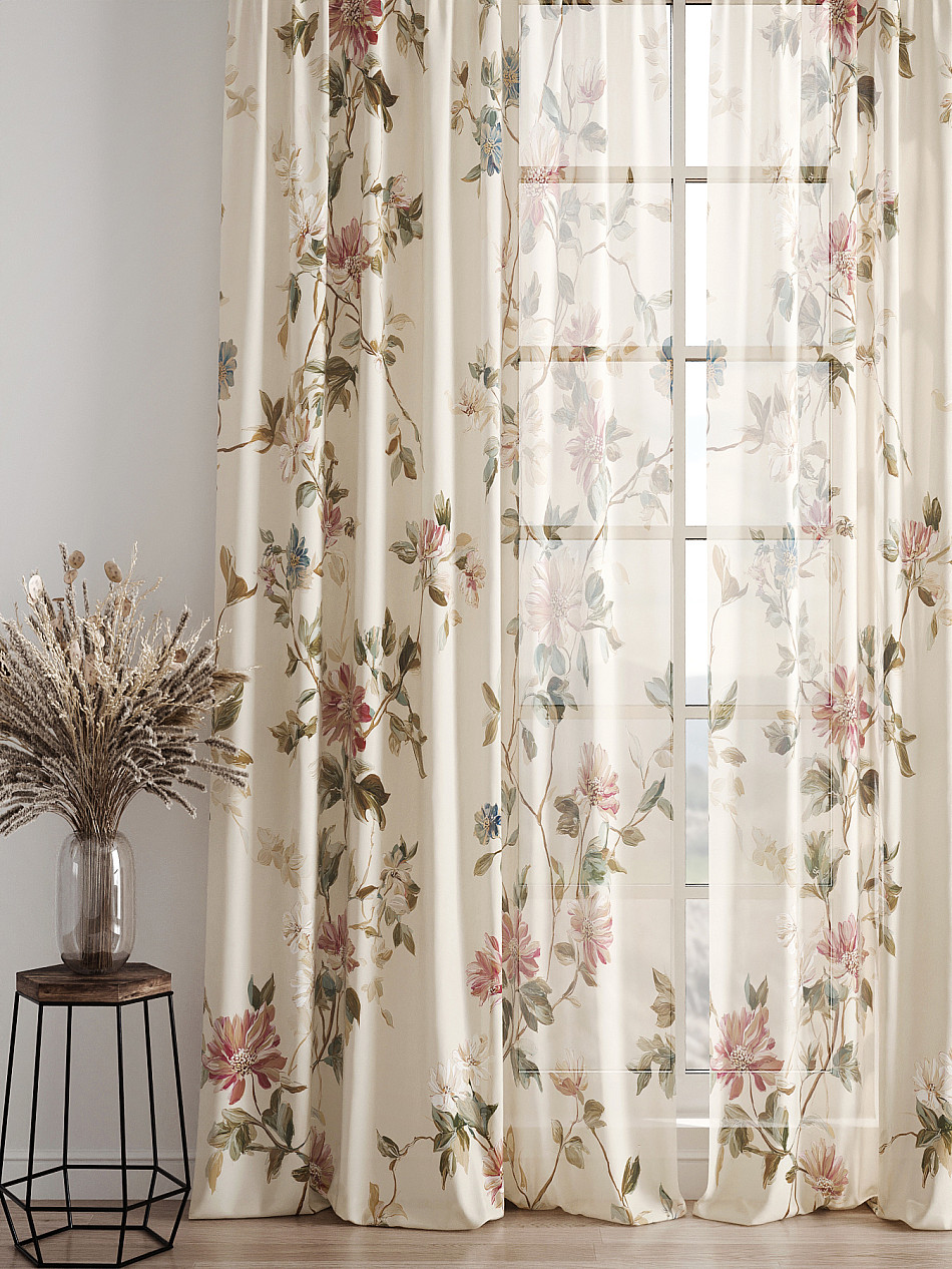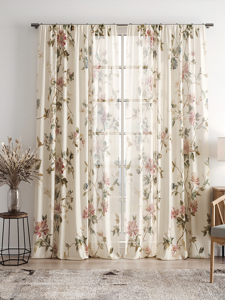 Тюль 2 шт. Легкая основа (вуаль) оформлена фотопечатью. Вуаль с матовой полупрозрачной текстурой. Отличается особым шиком, идеально подходит для создания воздушных штор. Придает ощущение свежести, хорошо пропускает воздух. Ткань неприхотлива в уходе, хорошо стирается без разрушения волокон с течением времени за счет высокого кручения нитей.