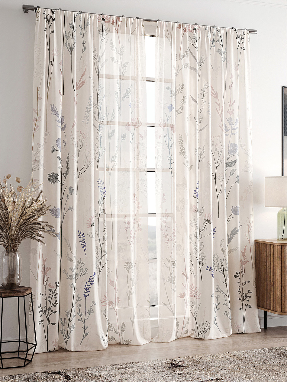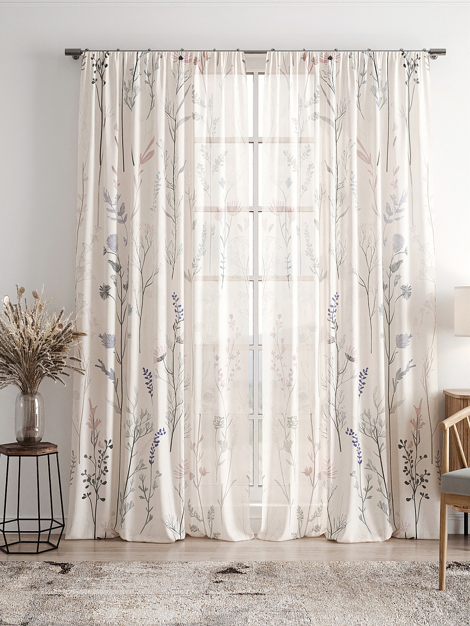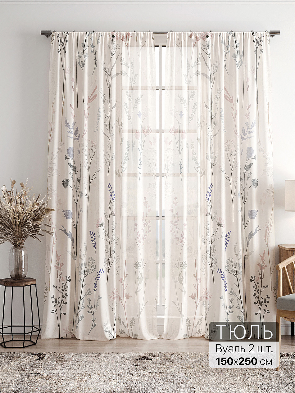 Тюль 2 шт. Легкая основа (вуаль) оформлена фотопечатью. Вуаль с матовой полупрозрачной текстурой. Отличается особым шиком, идеально подходит для создания воздушных штор. Придает ощущение свежести, хорошо пропускает воздух. Ткань неприхотлива в уходе, хорошо стирается без разрушения волокон с течением времени за счет высокого кручения нитей.