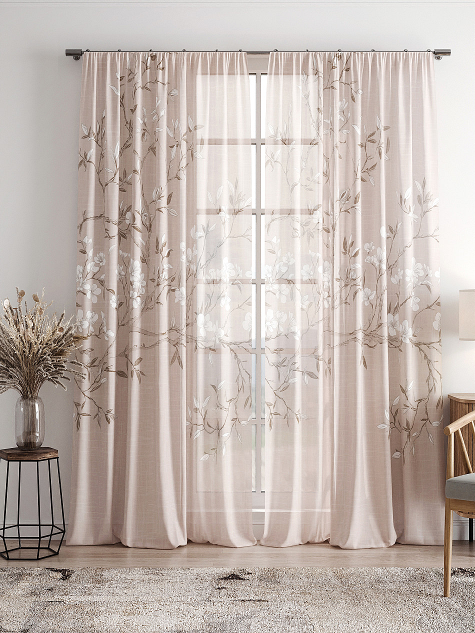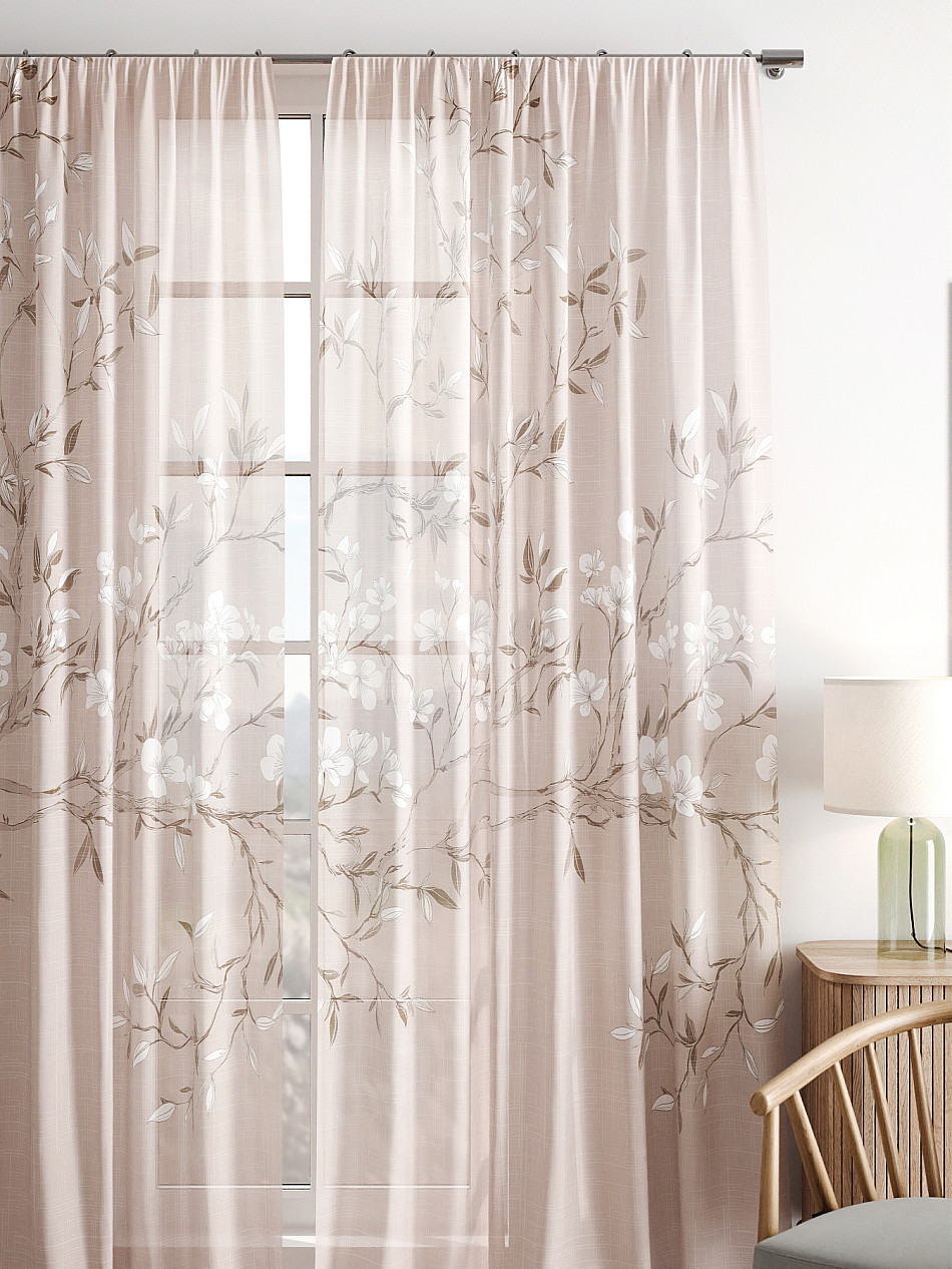 Тюль 2 шт. Легкая основа (вуаль) оформлена фотопечатью. Вуаль с матовой полупрозрачной текстурой. Отличается особым шиком, идеально подходит для создания воздушных штор. Придает ощущение свежести, хорошо пропускает воздух. Ткань неприхотлива в уходе, хорошо стирается без разрушения волокон с течением времени за счет высокого кручения нитей.