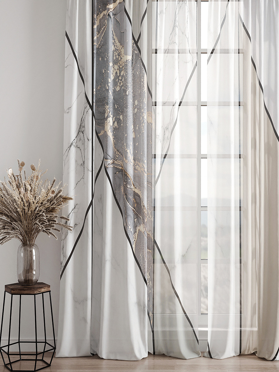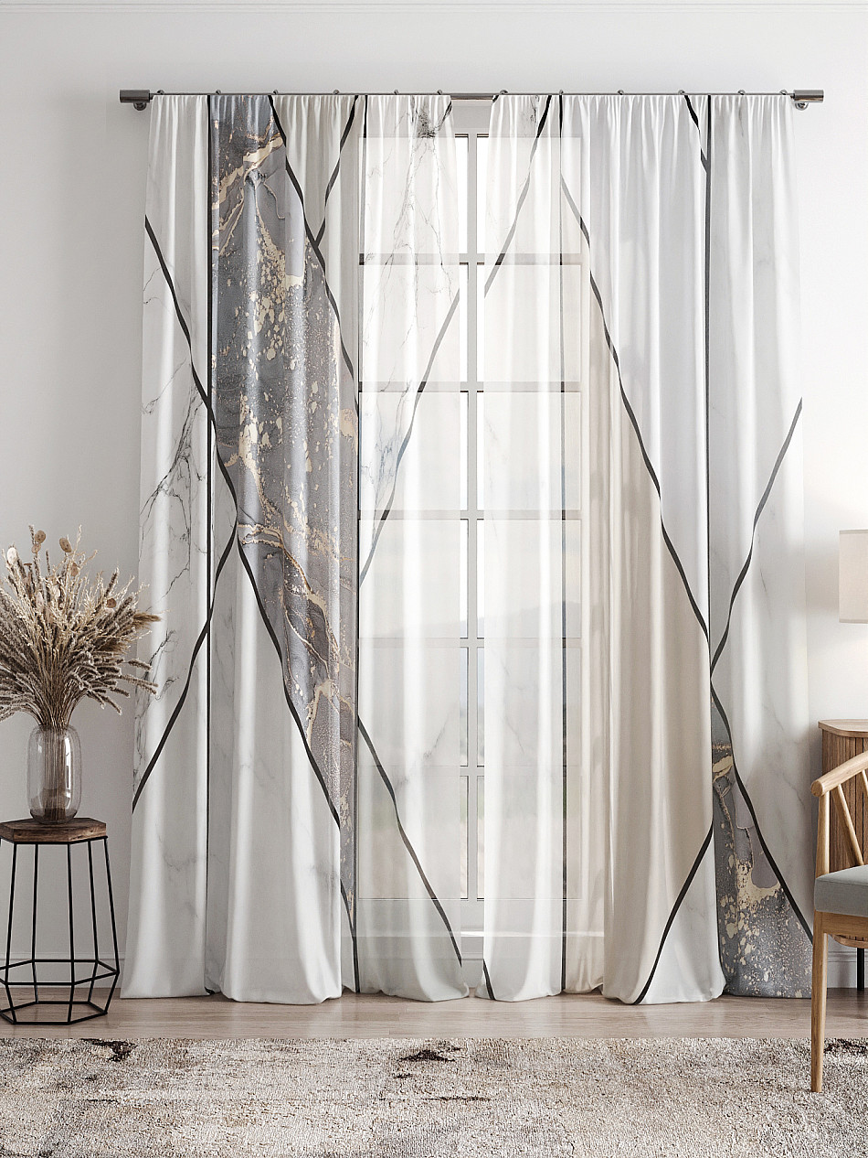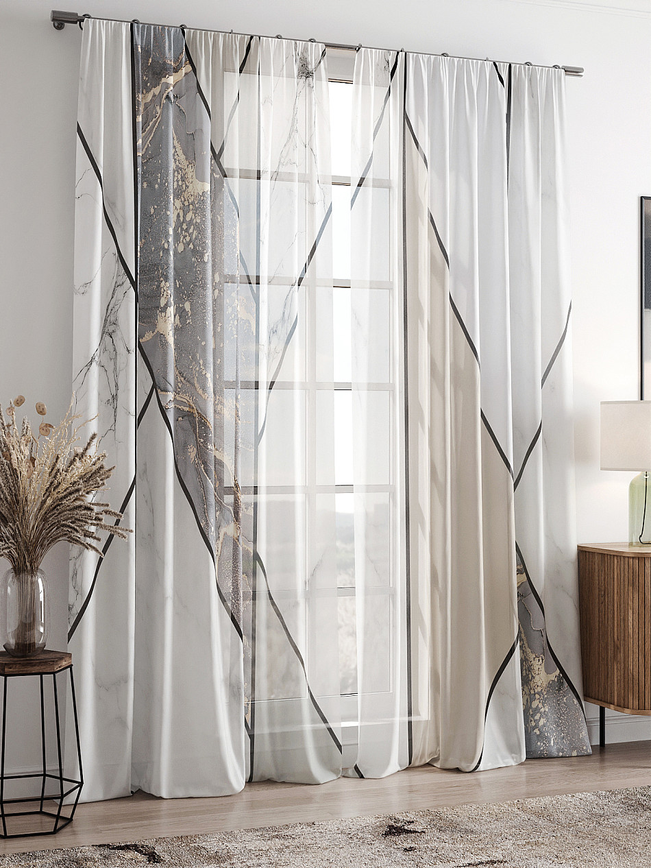 Hi-Tech Абстракция Ассиметрия Фактура (дерево, камни, мрамор) Фото принтАксессуары для оформления штор: