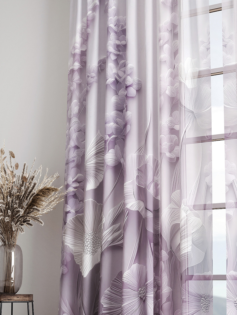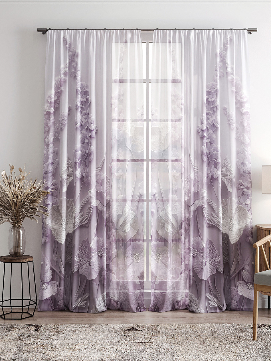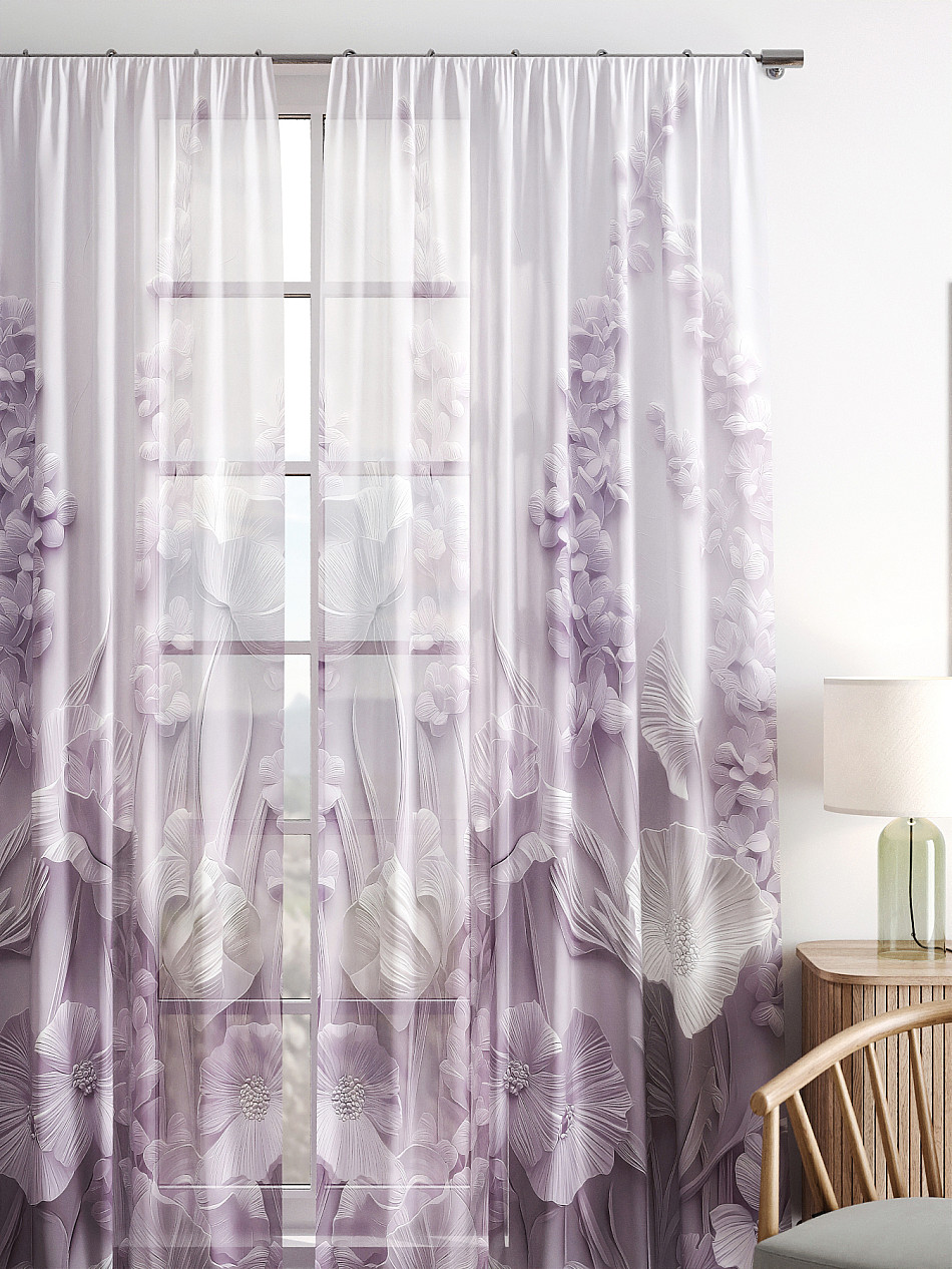 Тюль 2 шт. Легкая основа (вуаль) оформлена фотопечатью. Вуаль с матовой полупрозрачной текстурой. Отличается особым шиком, идеально подходит для создания воздушных штор. Придает ощущение свежести, хорошо пропускает воздух. Ткань неприхотлива в уходе, хорошо стирается без разрушения волокон с течением времени за счет высокого кручения нитей.