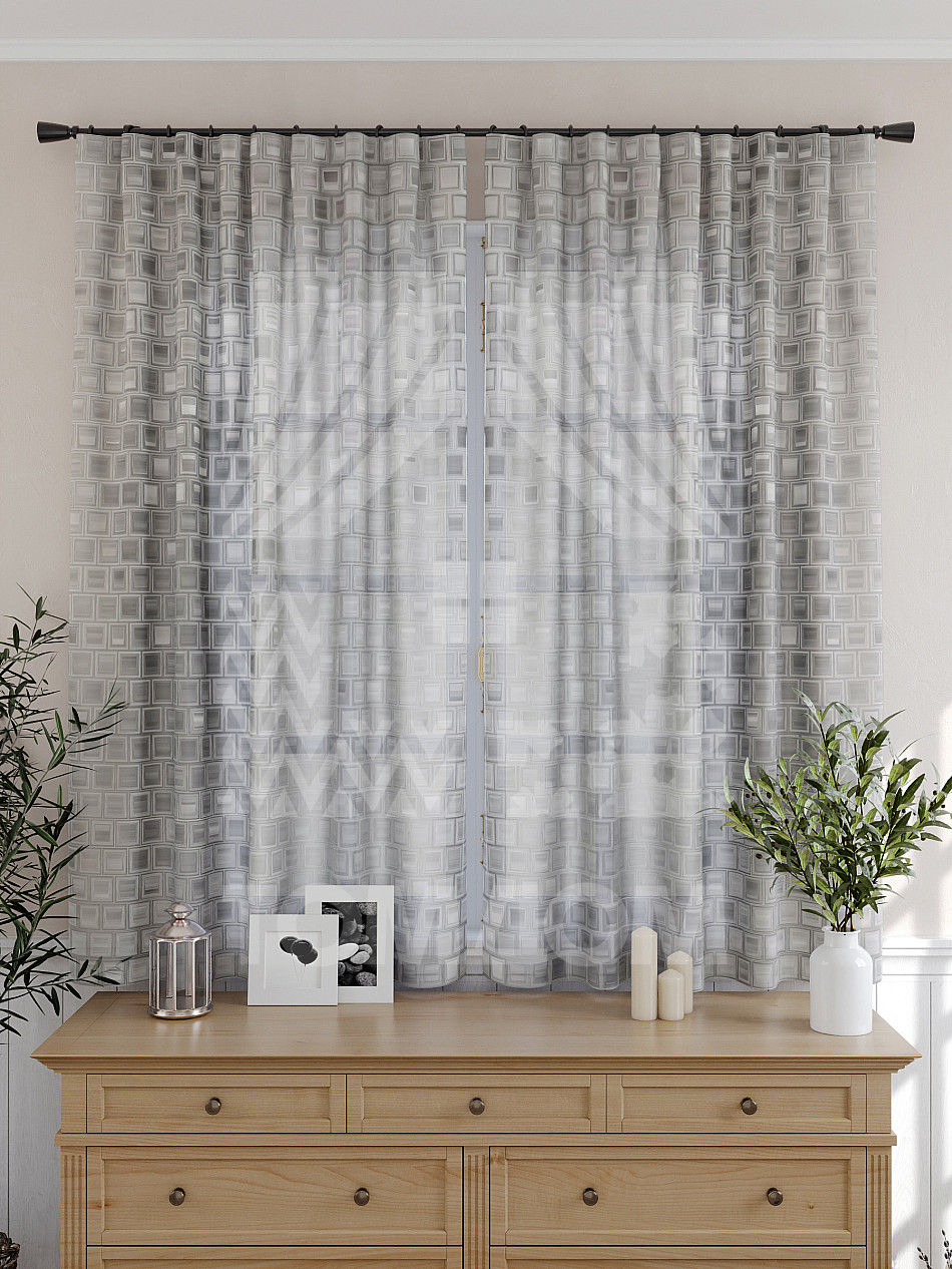 - Тюль с геометрическим рисунком