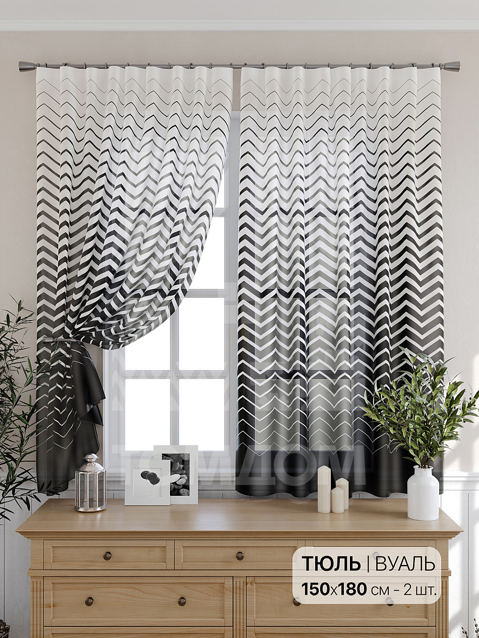 Тюль 2 шт. Подхват - доп.услуга. Легкая основа (вуаль) оформлена принтом. Вуаль с матовой полупрозрачной текстурой. Отличается особым шиком, идеально подходит для создания воздушных штор. Придает ощущение свежести, хорошо пропускает воздух. Ткань неприхотлива в уходе, хорошо стирается без разрушения волокон с течением времени за счет высокого кручения нитей.