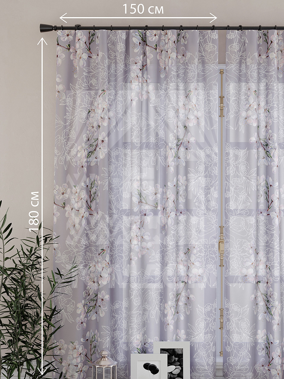 Ширина одного тюля без сборки 150 см, высота 180 см.