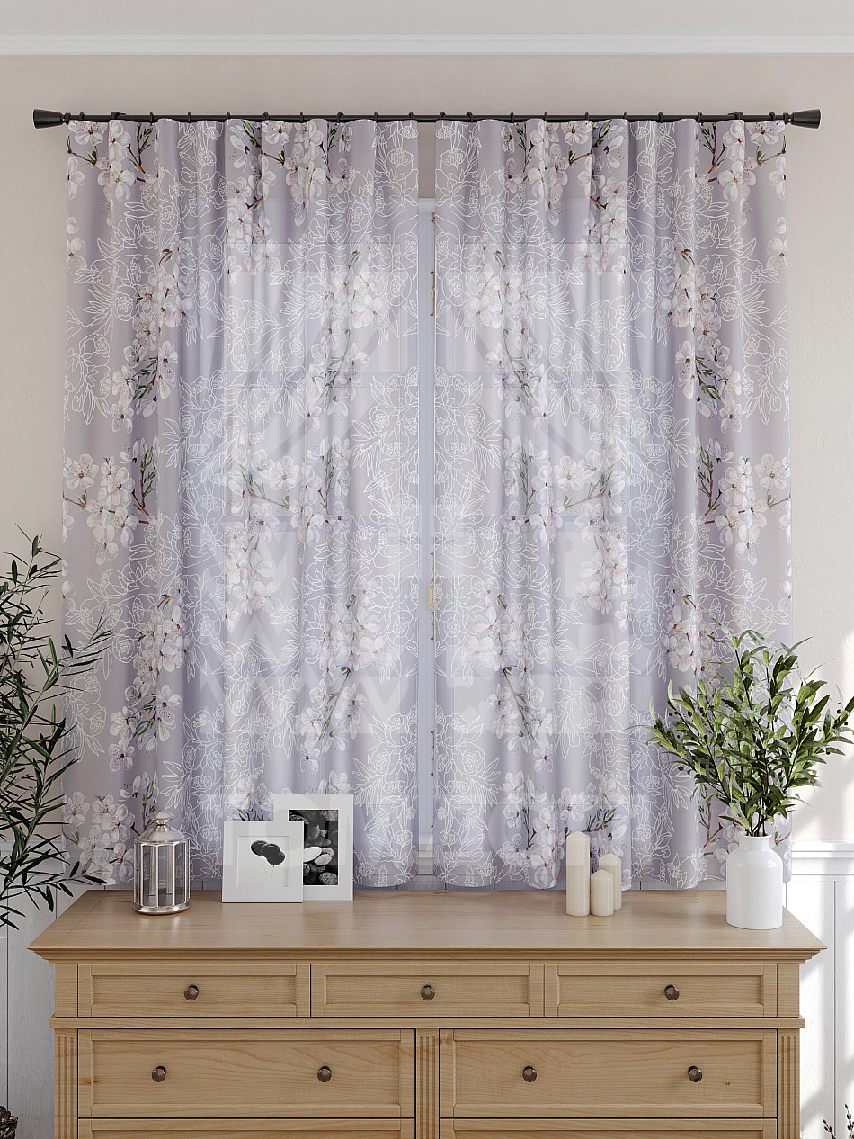 Тюль 2 шт. Подхват - доп.услуга. Легкая основа (вуаль) оформлена принтом. Вуаль с матовой полупрозрачной текстурой. Отличается особым шиком, идеально подходит для создания воздушных штор. Придает ощущение свежести, хорошо пропускает воздух. Ткань неприхотлива в уходе, хорошо стирается без разрушения волокон с течением времени за счет высокого кручения нитей.