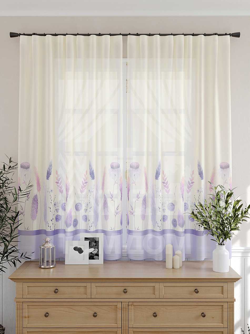 Тюль 2 шт. Подхват - доп.услуга. Легкая основа (вуаль) оформлена принтом. Вуаль с матовой полупрозрачной текстурой. Отличается особым шиком, идеально подходит для создания воздушных штор. Придает ощущение свежести, хорошо пропускает воздух. Ткань неприхотлива в уходе, хорошо стирается без разрушения волокон с течением времени за счет высокого кручения нитей.