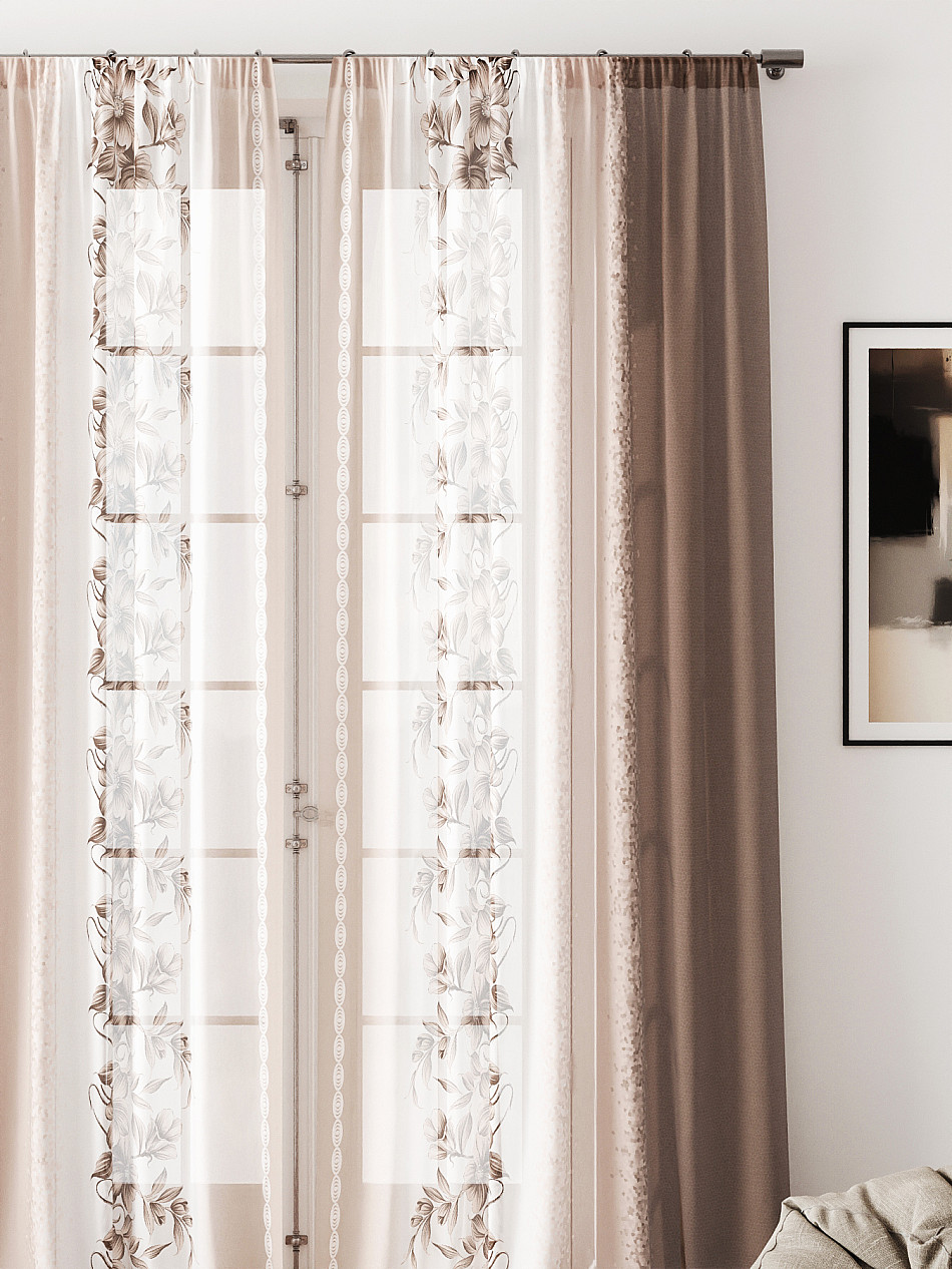Вуаль – невесомая, практически прозрачная и очень нежная ткань, которая прекрасно смотрится в любом интерьере. Вуалевые шторы изысканны и элегантны как соло, так и в составе шторных ансамблей. Такие гардины придают окну воздушность, легко драпируются, мягко преломляют солнечные лучи и вносят изящество в оформление комнаты. Благодаря широкому ассортименту можно выбрать однотонные вуалевые шторы, либо с орнаментом, с аппликацией или вышивкой, в любом случае ваш выбор будет смотреться красиво и современно.