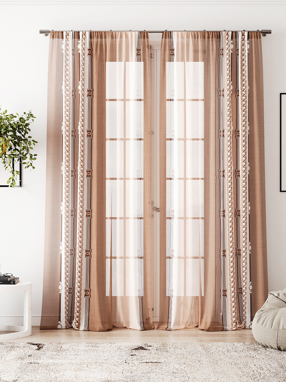 Тюль 2 шт. Легкая основа (вуаль) оформлена фотопечатью. Вуаль с матовой полупрозрачной текстурой. Отличается особым шиком, идеально подходит для создания воздушных штор. Придает ощущение свежести, хорошо пропускает воздух. Ткань неприхотлива в уходе, хорошо стирается без разрушения волокон с течением времени за счет высокого кручения нитей.