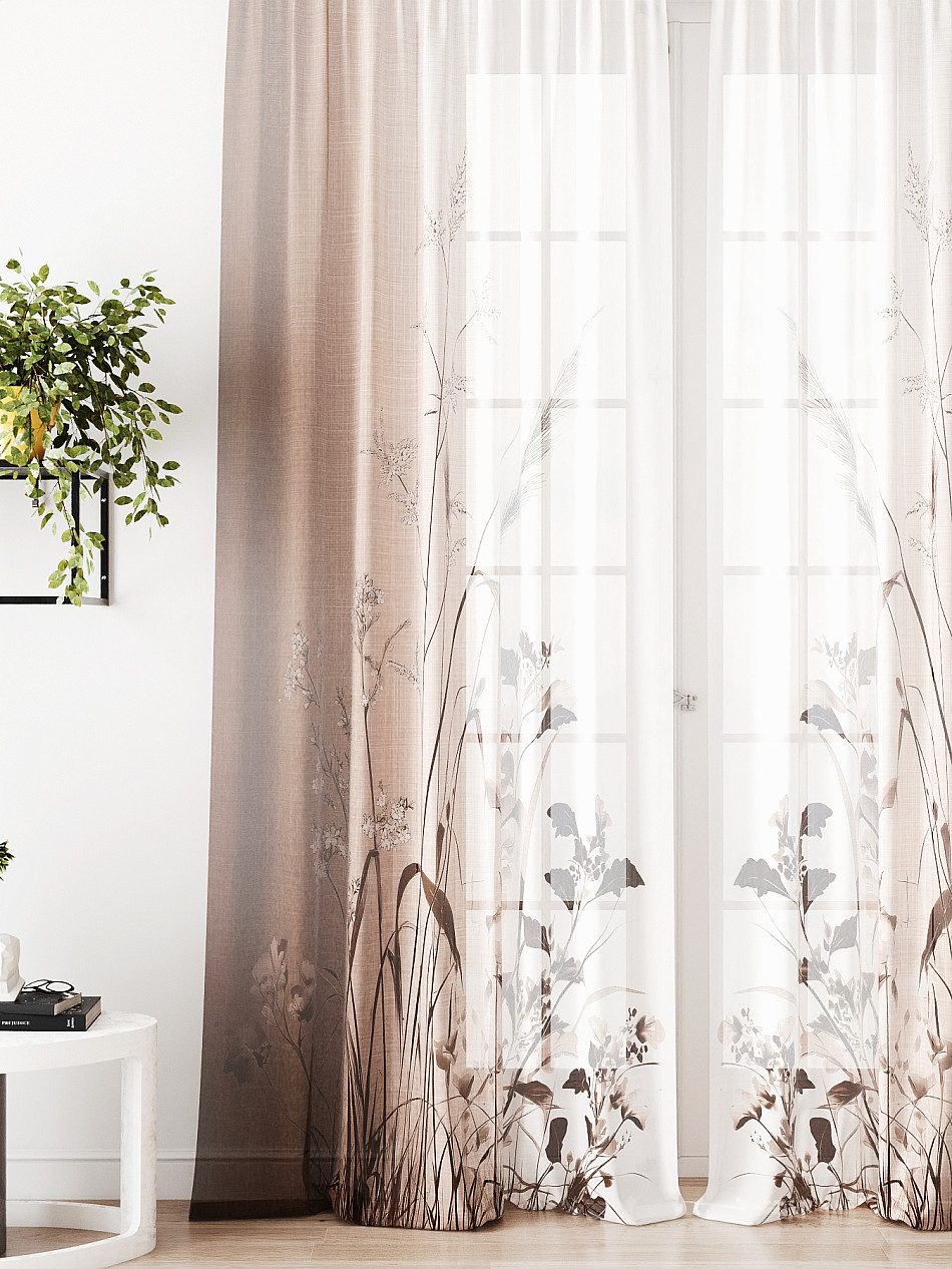 Тюль 2 шт. Легкая основа (вуаль) оформлена фотопечатью. Вуаль с матовой полупрозрачной текстурой. Отличается особым шиком, идеально подходит для создания воздушных штор. Придает ощущение свежести, хорошо пропускает воздух. Ткань неприхотлива в уходе, хорошо стирается без разрушения волокон с течением времени за счет высокого кручения нитей.
