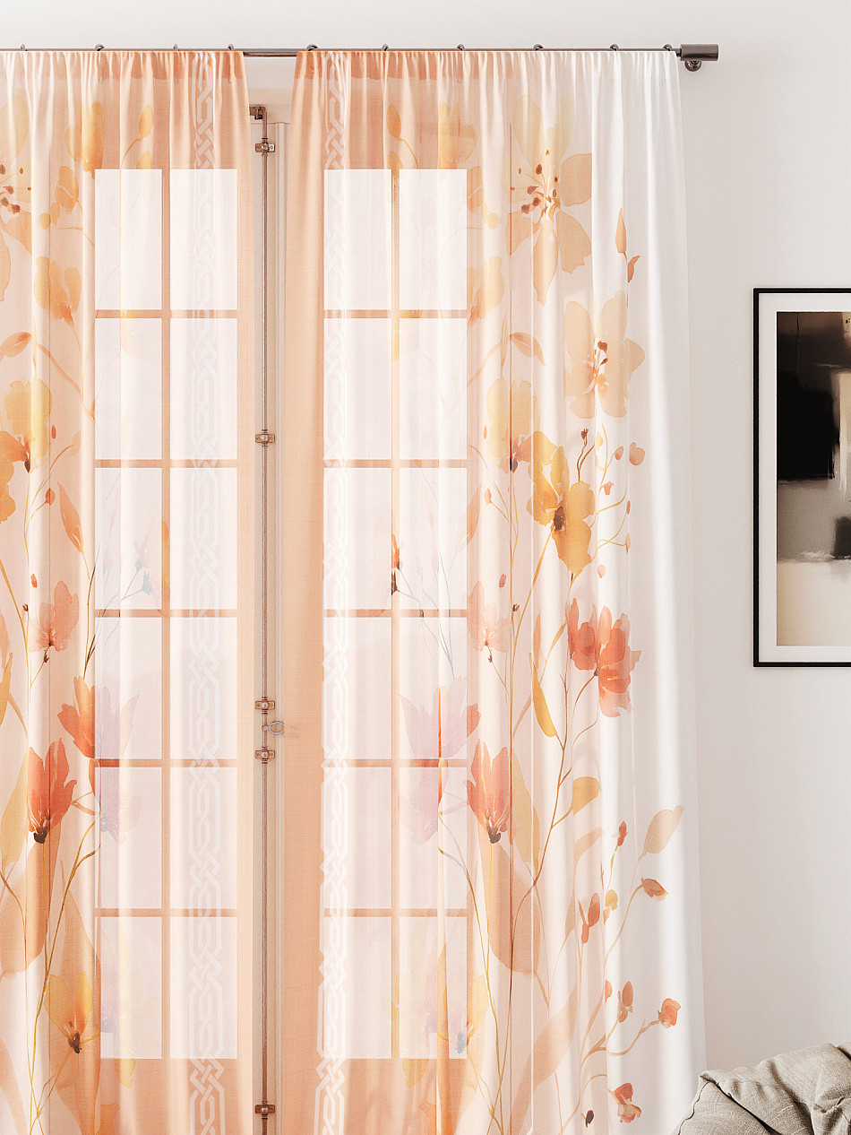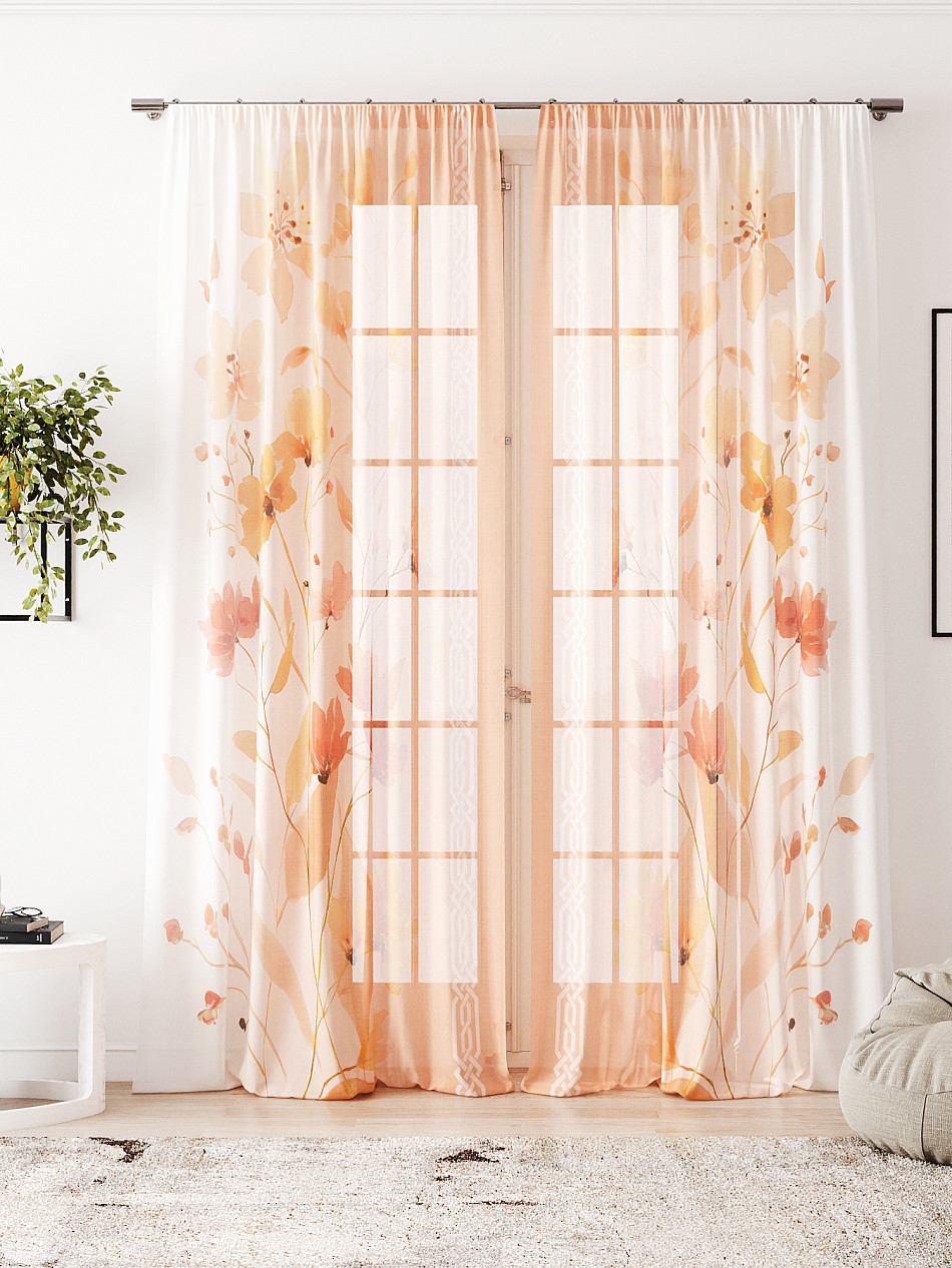 Тюль 2 шт. Легкая основа (вуаль) оформлена фотопечатью. Вуаль с матовой полупрозрачной текстурой. Отличается особым шиком, идеально подходит для создания воздушных штор. Придает ощущение свежести, хорошо пропускает воздух. Ткань неприхотлива в уходе, хорошо стирается без разрушения волокон с течением времени за счет высокого кручения нитей.