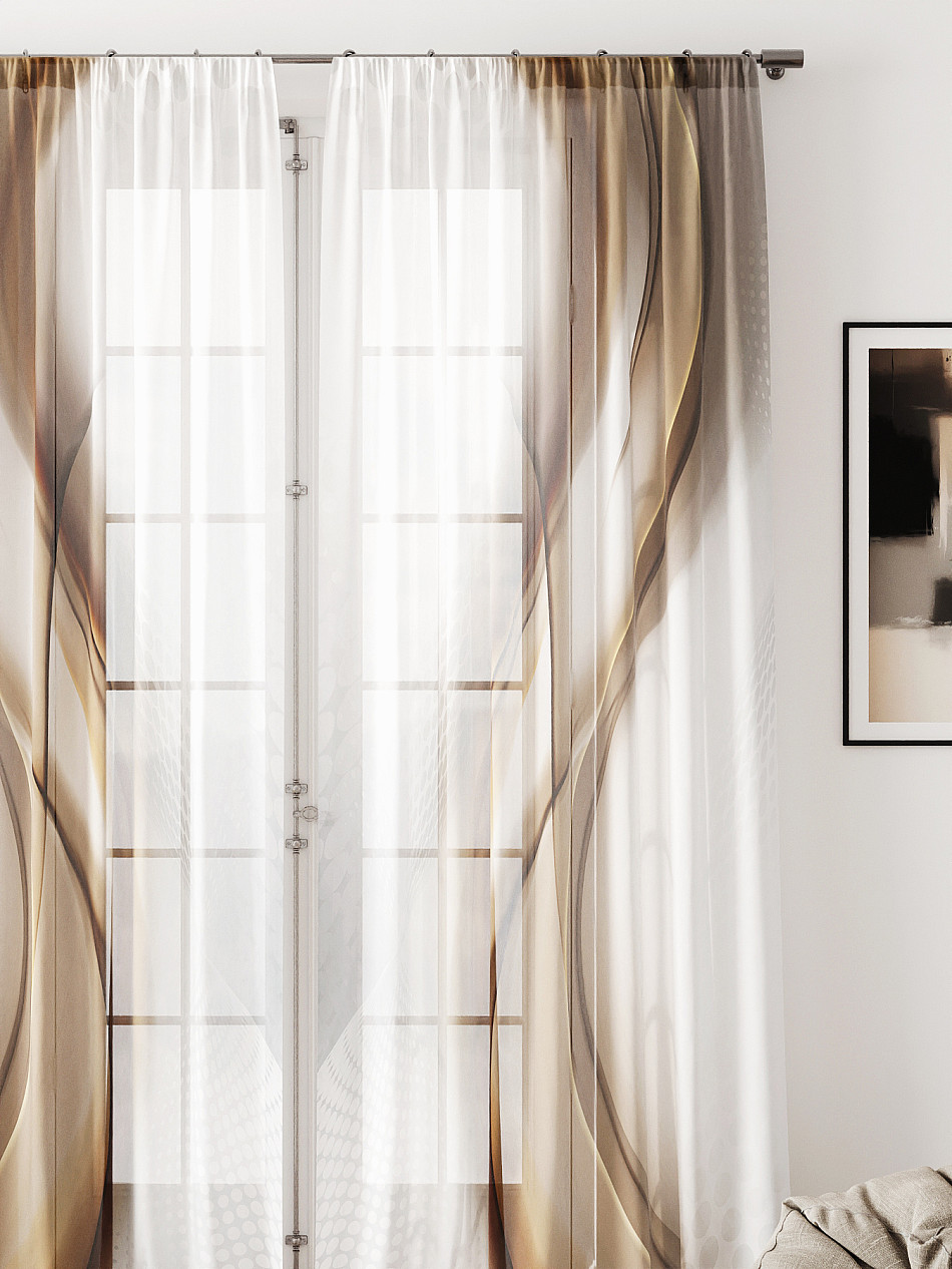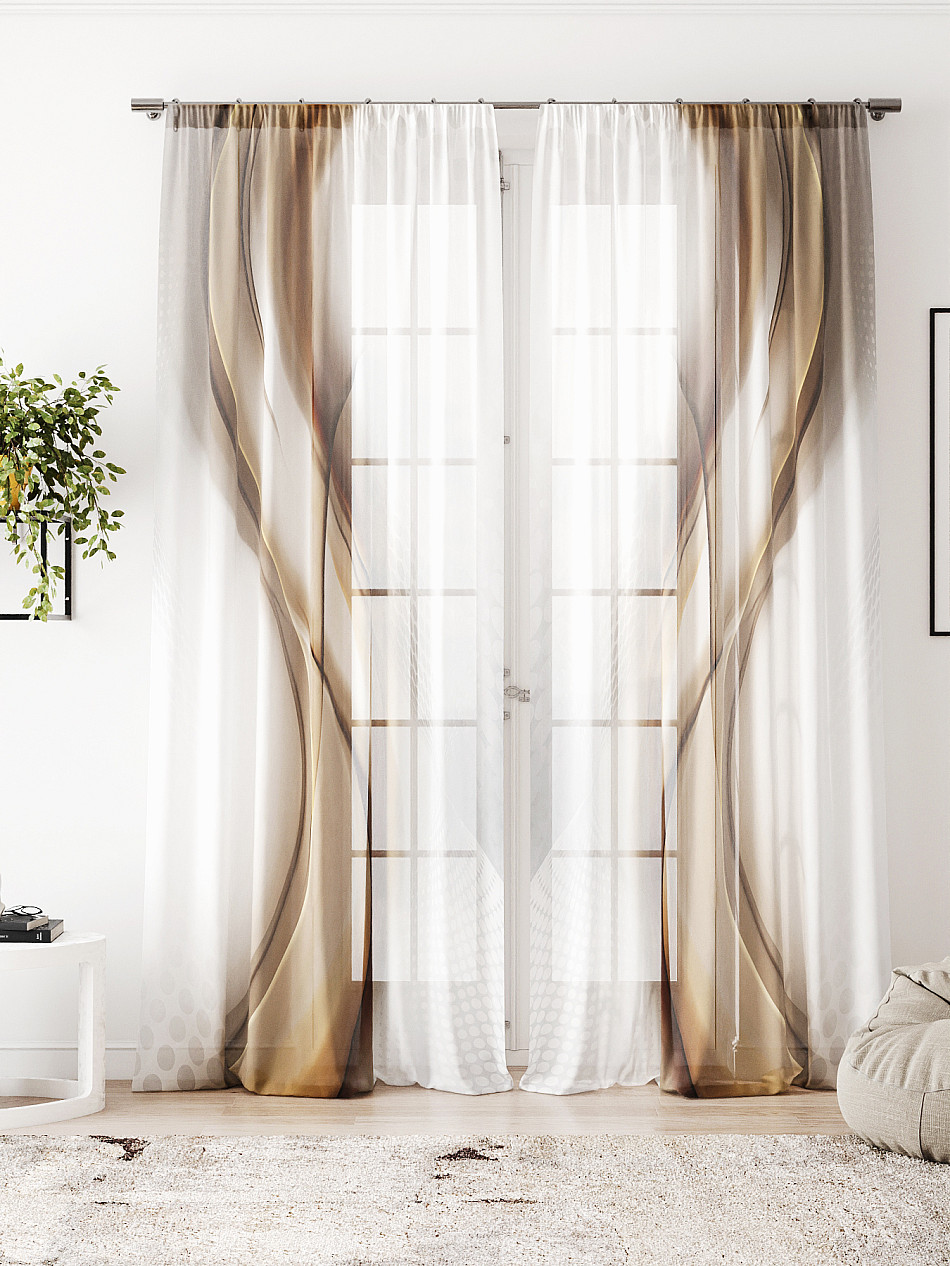 Тюль 2 шт. Легкая основа (вуаль) оформлена фотопечатью. Вуаль с матовой полупрозрачной текстурой. Отличается особым шиком, идеально подходит для создания воздушных штор. Придает ощущение свежести, хорошо пропускает воздух. Ткань неприхотлива в уходе, хорошо стирается без разрушения волокон с течением времени за счет высокого кручения нитей.