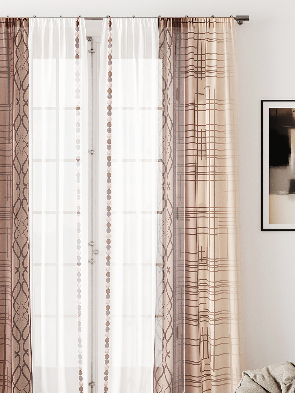 Вуаль – невесомая, практически прозрачная и очень нежная ткань, которая прекрасно смотрится в любом интерьере. Вуалевые шторы изысканны и элегантны как соло, так и в составе шторных ансамблей. Такие гардины придают окну воздушность, легко драпируются, мягко преломляют солнечные лучи и вносят изящество в оформление комнаты. Благодаря широкому ассортименту можно выбрать однотонные вуалевые шторы, либо с орнаментом, с аппликацией или вышивкой, в любом случае ваш выбор будет смотреться красиво и современно.