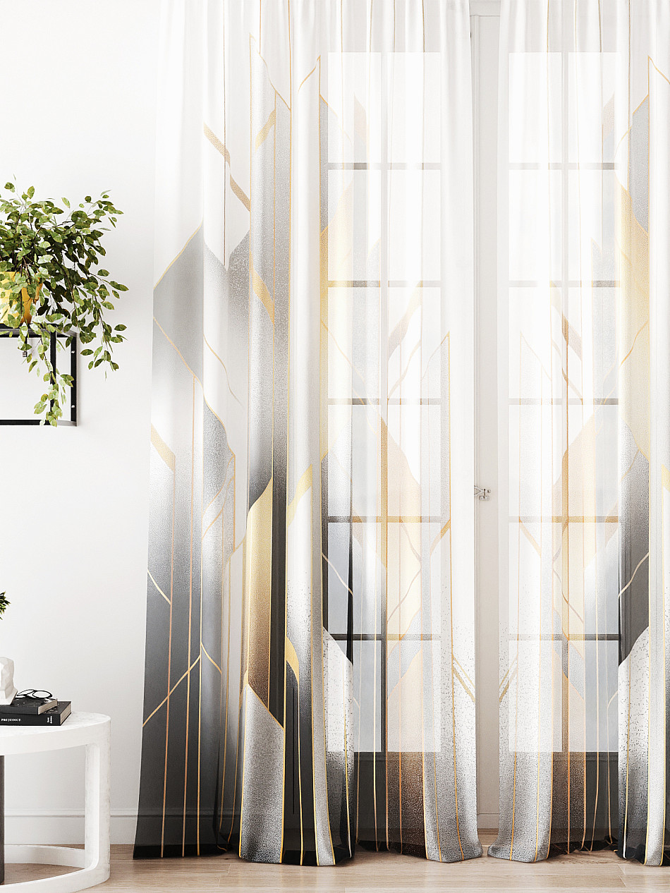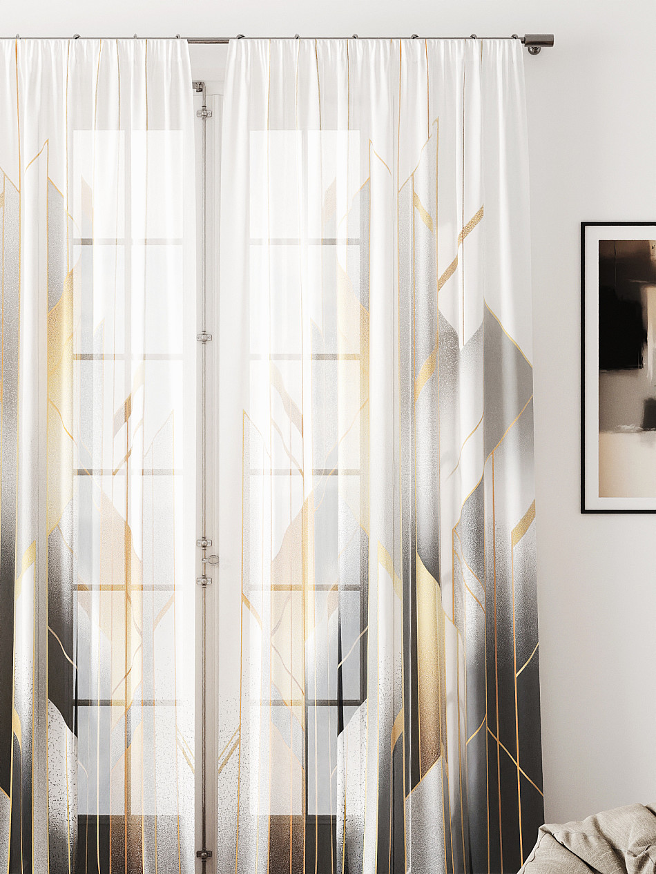 Тюль 2 шт. Легкая основа (вуаль) оформлена фотопечатью. Вуаль с матовой полупрозрачной текстурой. Отличается особым шиком, идеально подходит для создания воздушных штор. Придает ощущение свежести, хорошо пропускает воздух. Ткань неприхотлива в уходе, хорошо стирается без разрушения волокон с течением времени за счет высокого кручения нитей.
