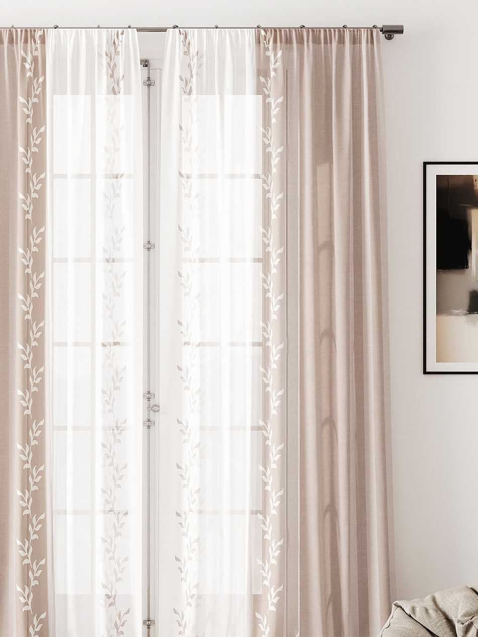 Вуаль 150х250 см — 2 шт. ( Изменить высоту) Крепление: шторная лента (крючки), кулиска Подробнее