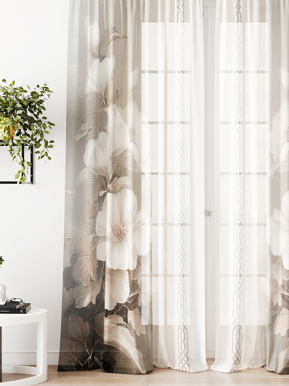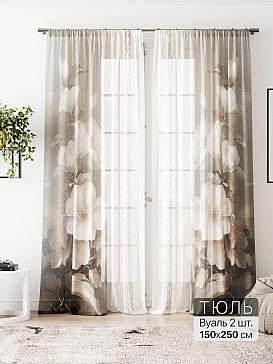 Тюль 2 шт. Легкая основа (вуаль) оформлена фотопечатью. Вуаль с матовой полупрозрачной текстурой. Отличается особым шиком, идеально подходит для создания воздушных штор. Придает ощущение свежести, хорошо пропускает воздух. Ткань неприхотлива в уходе, хорошо стирается без разрушения волокон с течением времени за счет высокого кручения нитей.