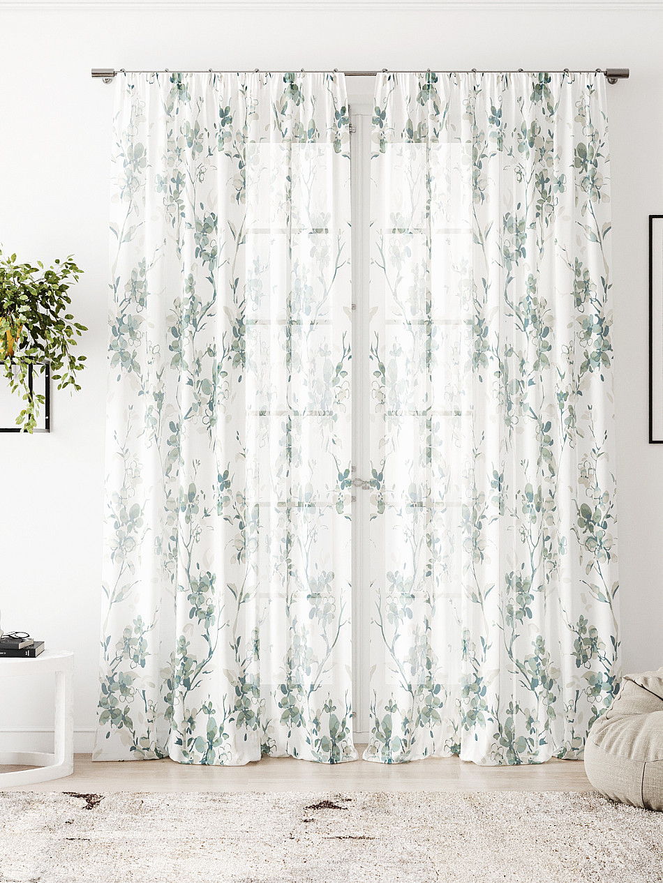 Тюль 2 шт. Легкая основа (вуаль) оформлена фотопечатью. Вуаль с матовой полупрозрачной текстурой. Отличается особым шиком, идеально подходит для создания воздушных штор. Придает ощущение свежести, хорошо пропускает воздух. Ткань неприхотлива в уходе, хорошо стирается без разрушения волокон с течением времени за счет высокого кручения нитей.