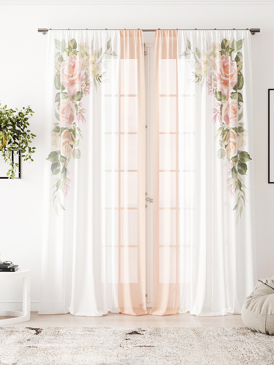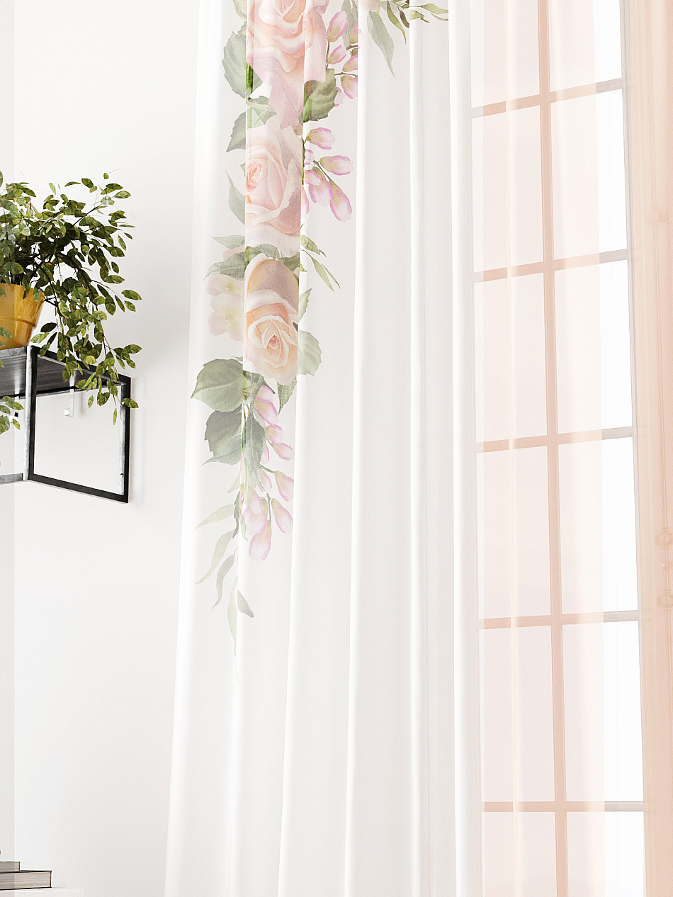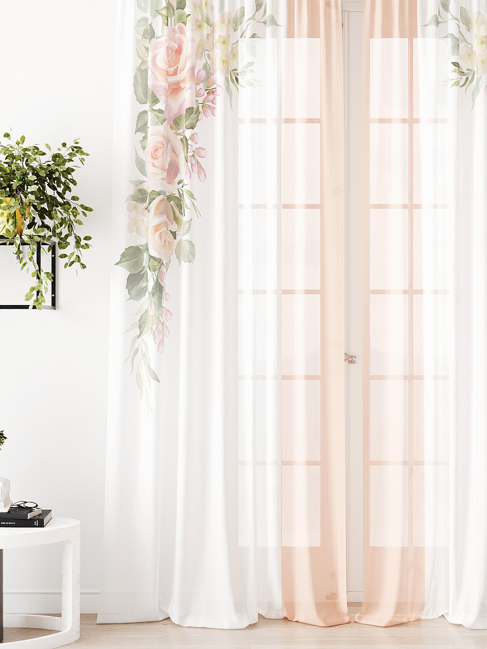 Тюль 2 шт. Легкая основа (вуаль) оформлена фотопечатью. Вуаль с матовой полупрозрачной текстурой. Отличается особым шиком, идеально подходит для создания воздушных штор. Придает ощущение свежести, хорошо пропускает воздух. Ткань неприхотлива в уходе, хорошо стирается без разрушения волокон с течением времени за счет высокого кручения нитей.