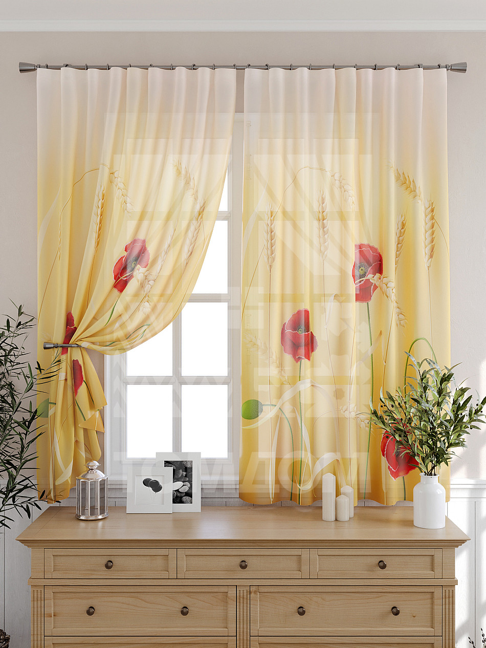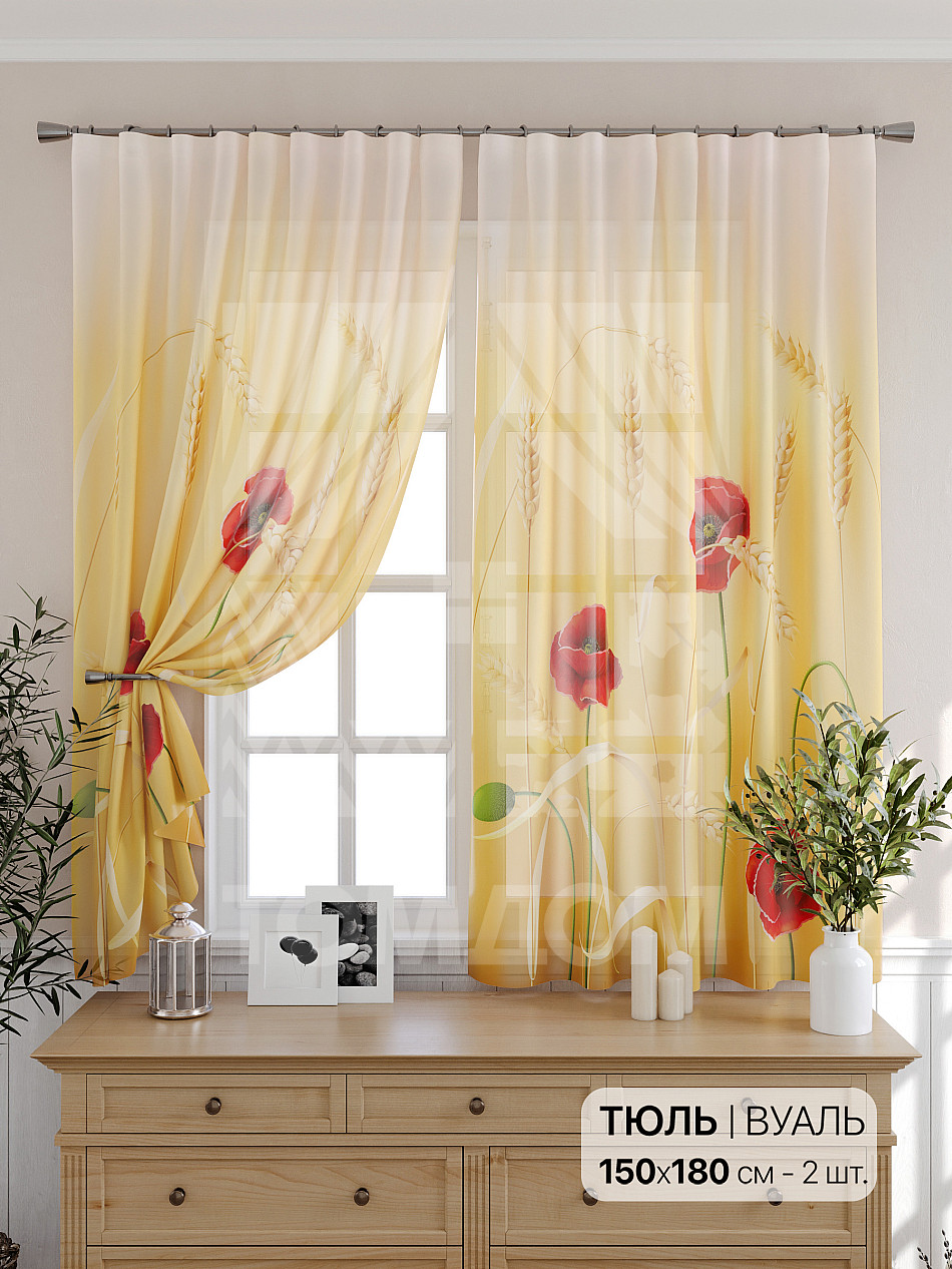 Тюль 2 шт. Подхват - доп.услуга. Легкая основа (вуаль) оформлена принтом. Вуаль с матовой полупрозрачной текстурой. Отличается особым шиком, идеально подходит для создания воздушных штор. Придает ощущение свежести, хорошо пропускает воздух. Ткань неприхотлива в уходе, хорошо стирается без разрушения волокон с течением времени за счет высокого кручения нитей.