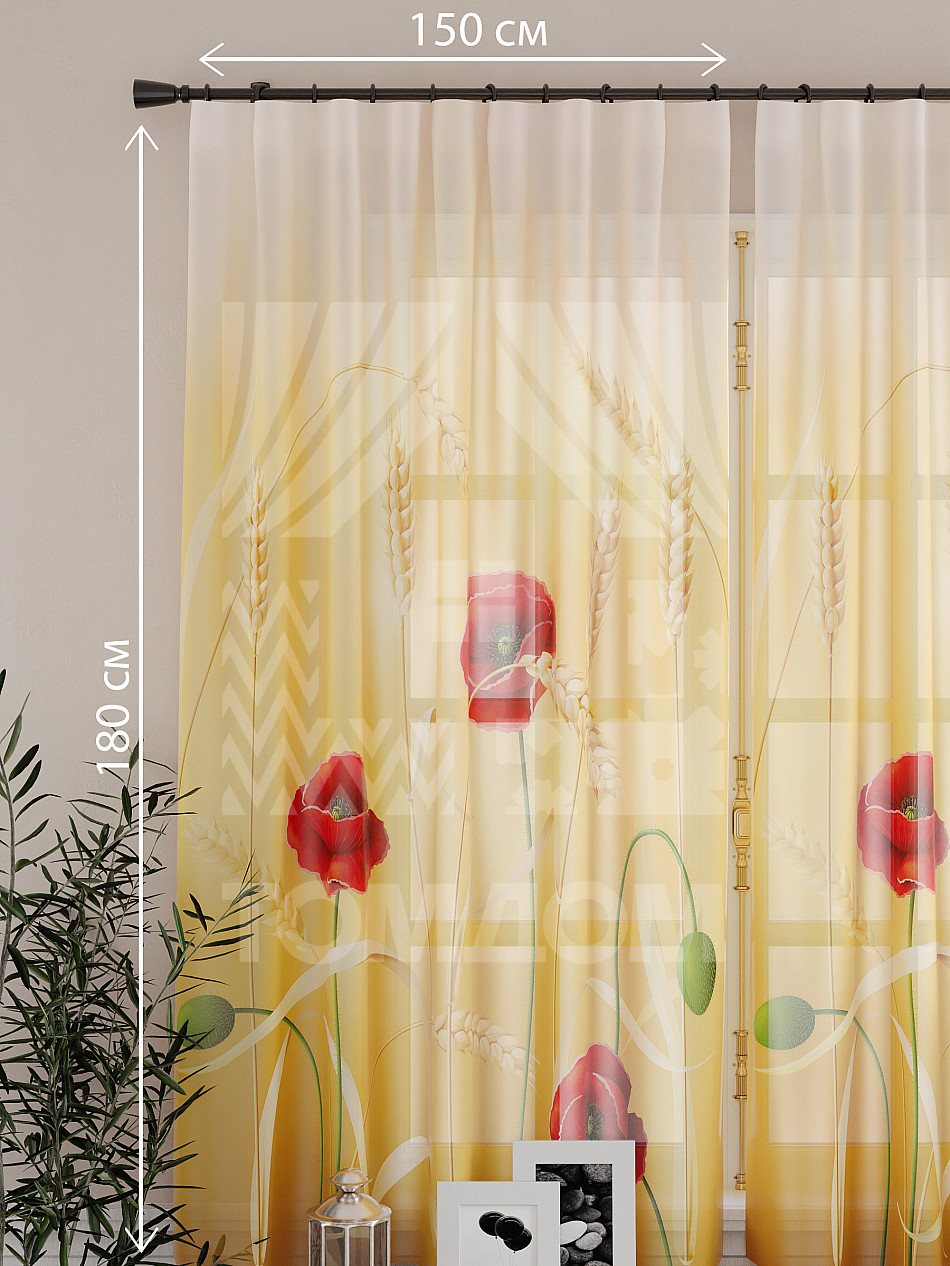 Ширина одного тюля без сборки 150 см, высота 180 см.