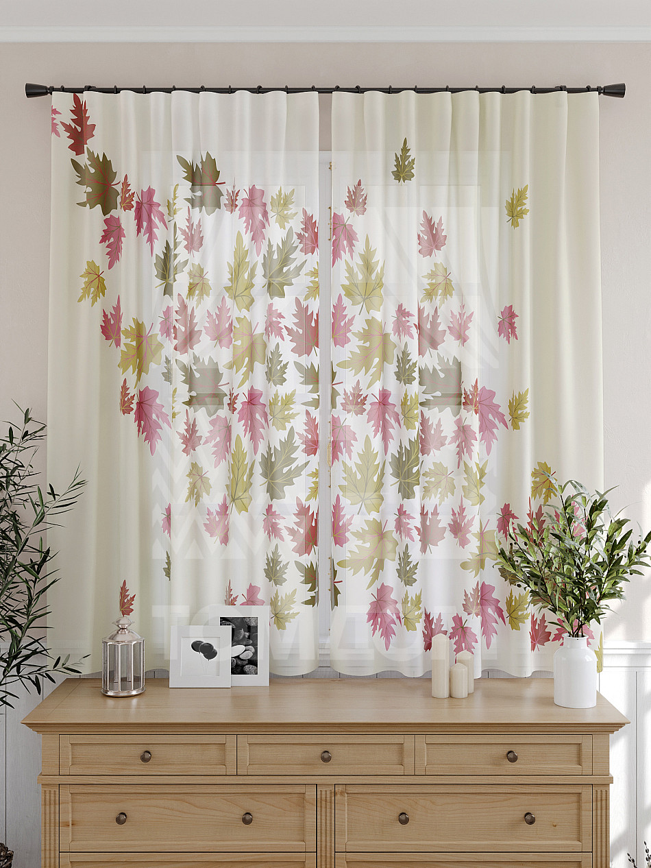 Тюль 2 шт. Подхват - доп.услуга. Легкая основа (вуаль) оформлена принтом. Вуаль с матовой полупрозрачной текстурой. Отличается особым шиком, идеально подходит для создания воздушных штор. Придает ощущение свежести, хорошо пропускает воздух. Ткань неприхотлива в уходе, хорошо стирается без разрушения волокон с течением времени за счет высокого кручения нитей.