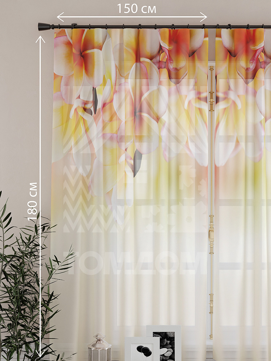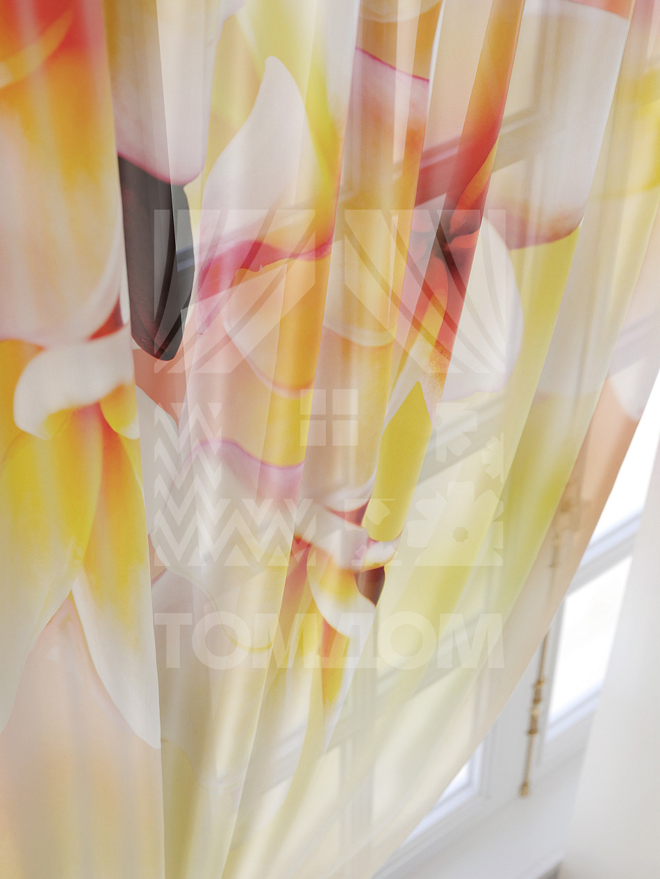Тюль 2 шт. Подхват - доп.услуга. Легкая основа (вуаль) оформлена принтом. Вуаль с матовой полупрозрачной текстурой. Отличается особым шиком, идеально подходит для создания воздушных штор. Придает ощущение свежести, хорошо пропускает воздух. Ткань неприхотлива в уходе, хорошо стирается без разрушения волокон с течением времени за счет высокого кручения нитей.